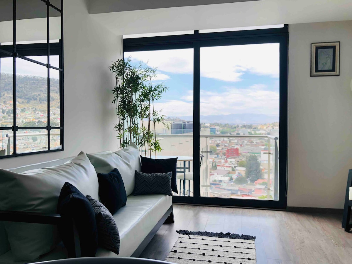 Enjoy a unique stay in our comfortable open-concept loft with panoramic views of Toluca. Enjoy 24/7 video surveillance and an unbeatable location—just five blocks from the Government Palace and next to Plaza Molino Shopping Center. It’s the perfect space to work, relax, or explore downtown Toluca, with the convenience of having Plaza Molino right in the building—featuring a Starbucks, cinema, restaurants, Oxxo, Smart Fit gym, and more.