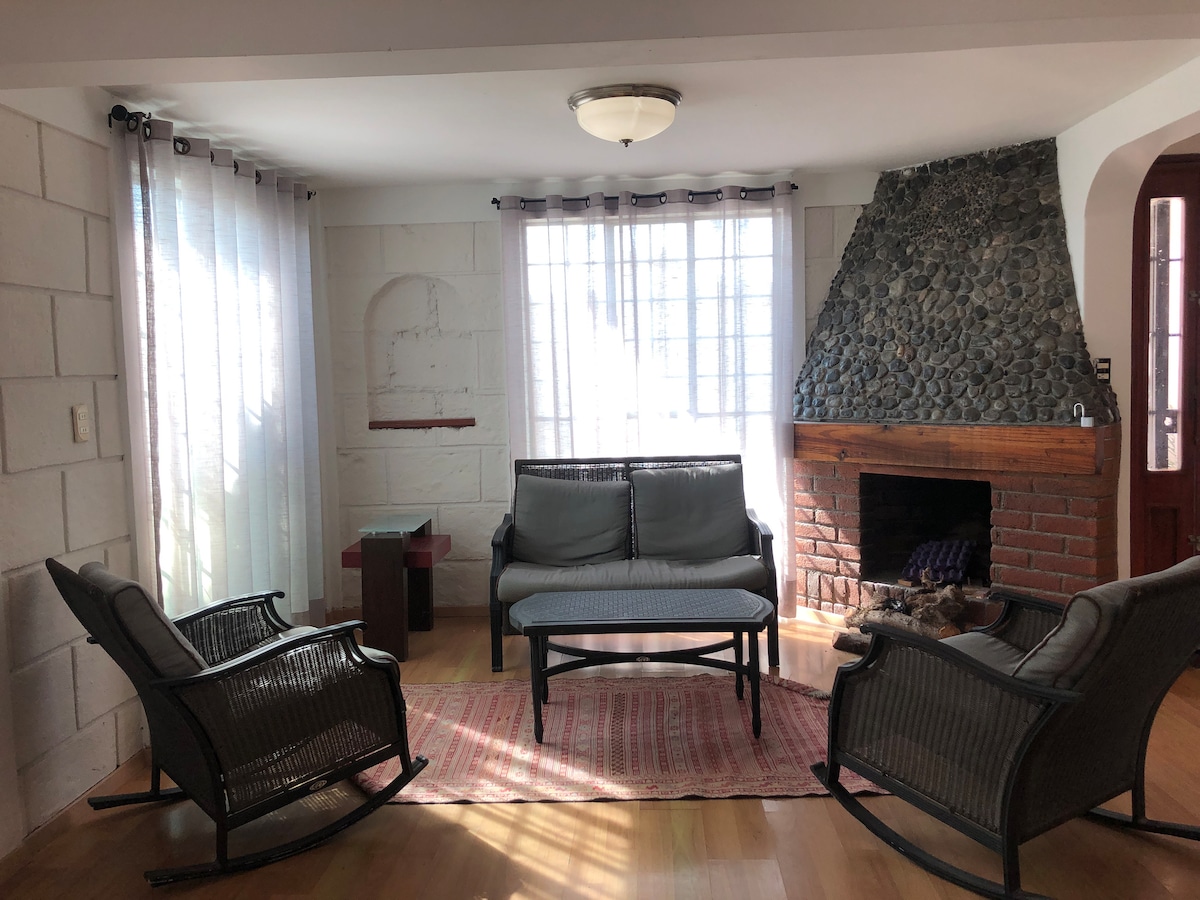 Tómate un descanso y relájate en este tranquilo oasis tipo rústico con terraza y comedor al aire libre, asador, amplio jacuzzi exterior; disfruta la sensación de una cabaña (con vigas y techos de madera), con cocina totalmente equipada y 2 baños completos!… a solo unos minutos de Metepec ó Toluca, garage privado, wifi, TV 32” con Streaming (Netflix, Prime y Claro Video) y una biblioteca con lecturas para todos los gustos. A pocos minutos del Zoológico Zacango. Será una experiencia inolvidable!