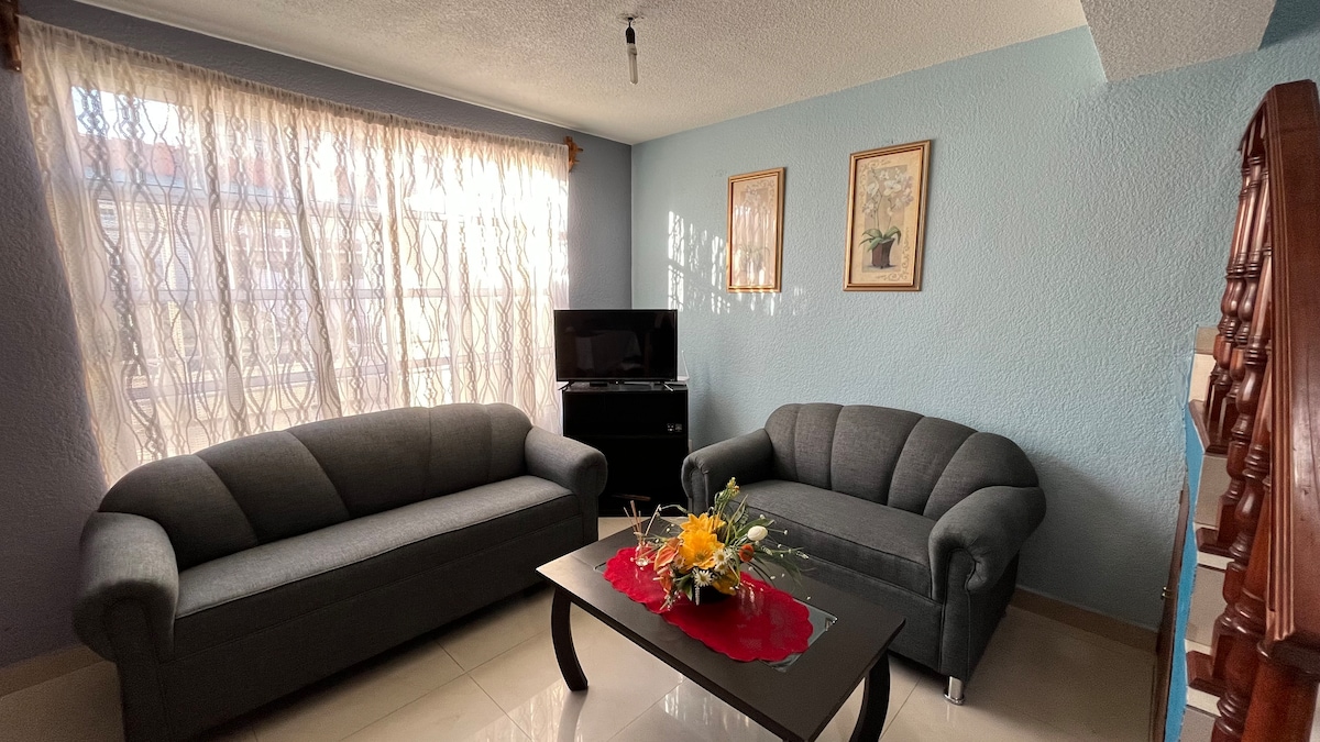 Casa segura y silenciosa, 3 recamaras hasta para 6 personas, cocina equipada, estacionamiento dentro del fraccionamiento. Rodeada de las principales avenidas del municipio y a solo 10 minutos de las principales plazas comerciales Town Square y Galerías Metepec. Metepec, pueblo mágico y cuna del árbol de la vida, tiene una gran tradición alfarera y el centro está a tan solo 8 minutos en auto. El espacio está a 15 minutos del aeropuerto y a 30 de la central de autobuses y de Toluca centro.