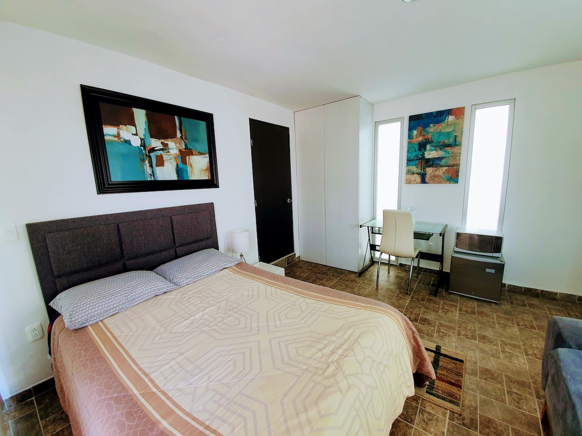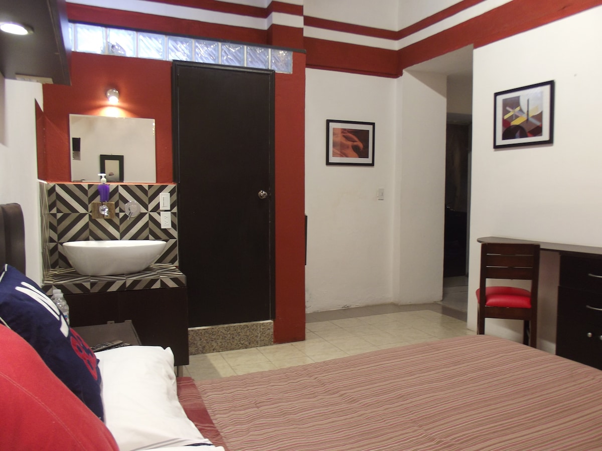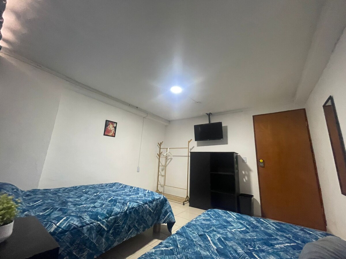 Bienvenidos Si buscas un lugar seguro, dentro de una casa familiar, pero con cierta independencia que te permitirá desenvolverte con más holgura de la que tendrías en una habitación, este espacio es para ti. A 10 minutos del centro, al rededor tiendas, mercado tradicional, comercios modernos, gimnasios, parques y de fácil acceso al transporte que te llevará a las principales zonas. Propio para estancias cortas o largas .
