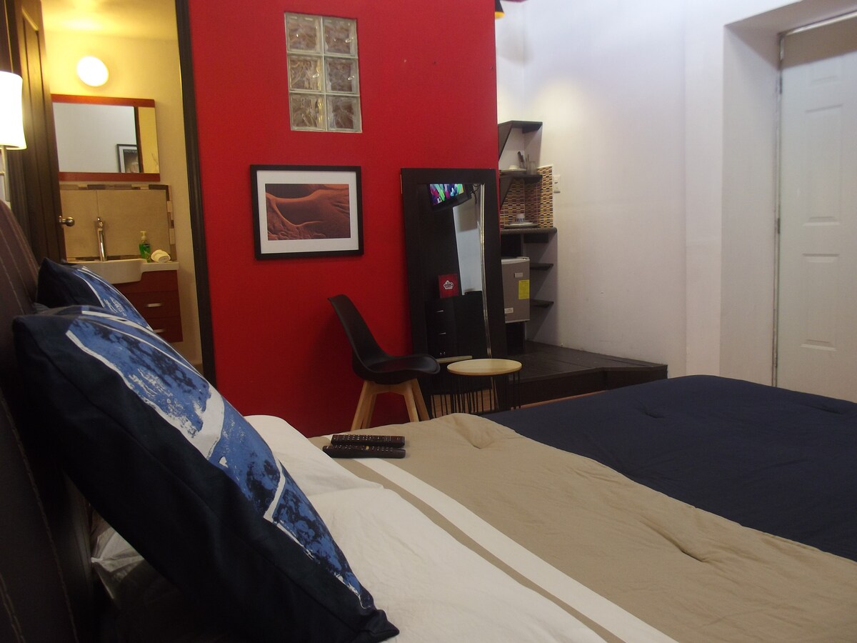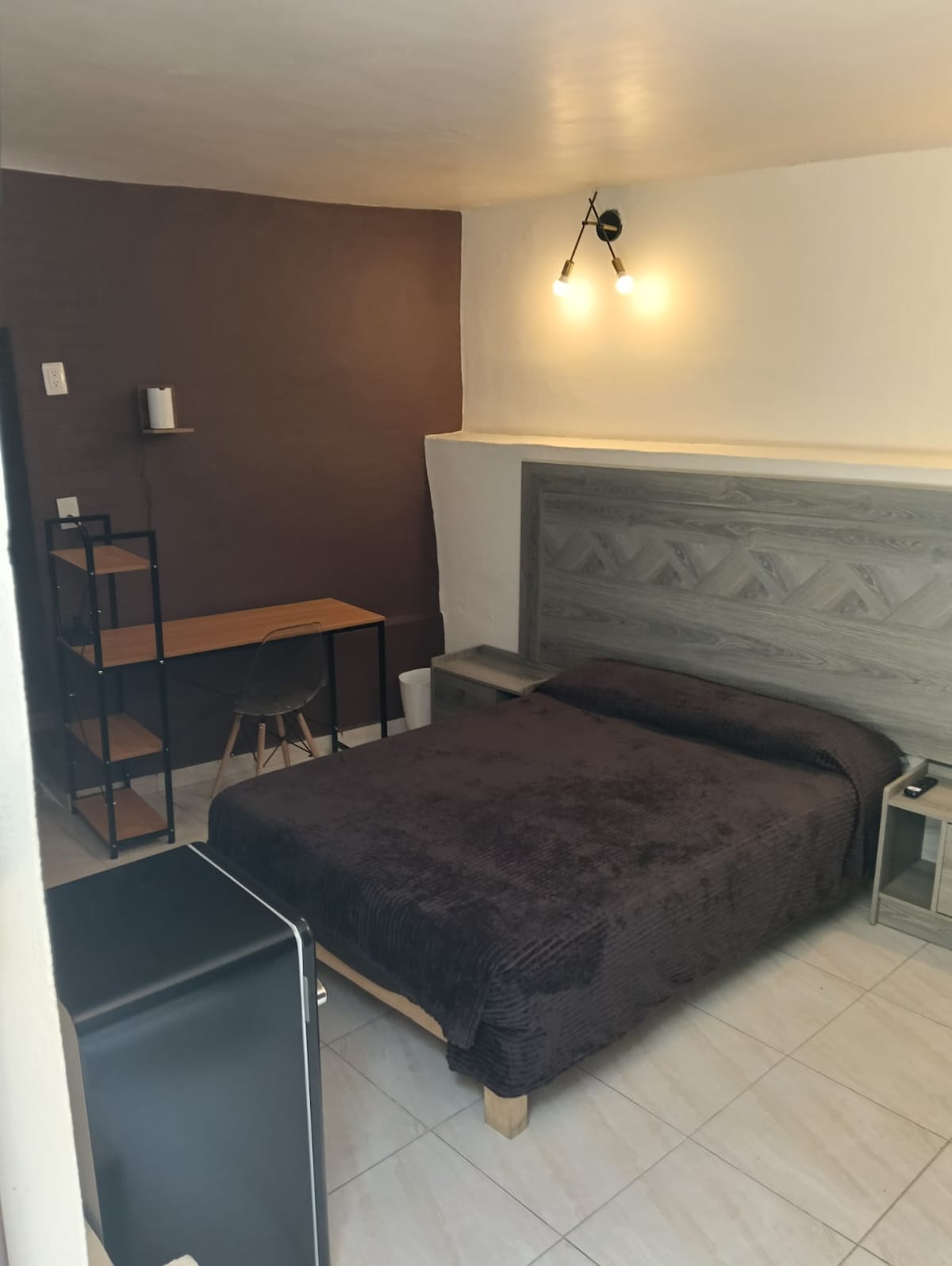 Disfruta de una cómoda habitación privada equipada con todo lo necesario para tu estancia. Cuenta con una cama matrimonial perfecta para descansar, baño privado para tu comodidad, televisión, frigobar y una pequeña mesa ideal para desayunar disfrutar de un café. escritorio para trabajar. Un espacio acogedor y funcional pensado para que te sientas como en casa.