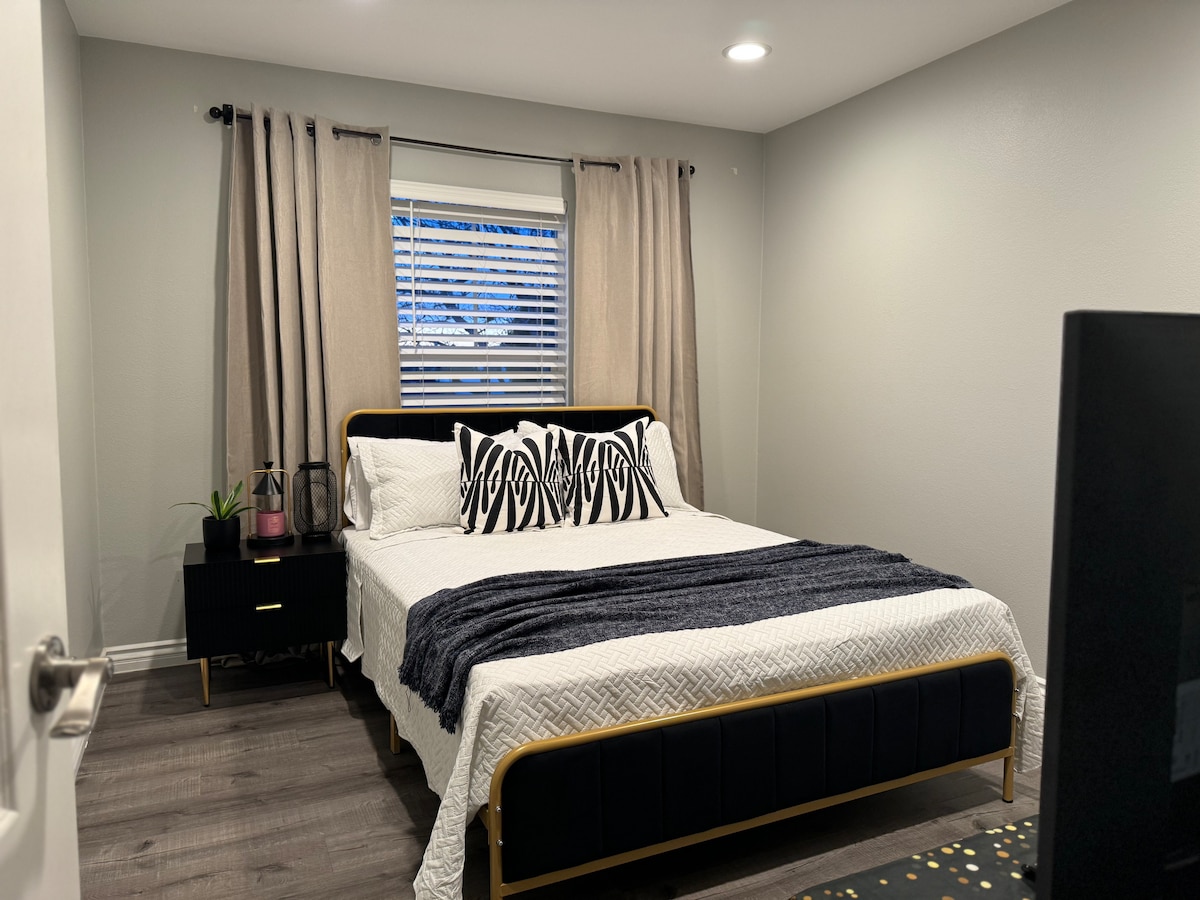 This accommodation is located in a quiet neighborhood where you can stay and rest without any disturbance. It is only 3 miles away from Disneyland, Anaheim Conventional Center, and other many local attractions. The room is equipped with a king-sized bed, a TV with Netflix connected, and a closet. There will be a private bathroom attached inside. The shampoo and the body wash will be provided. There is a keyless lock to open the door in which the code will be messaged prior your arrival.