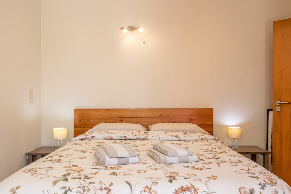 Relaxe com a sua família neste alojamento tranquilo. É uma vivenda com um pequeno jardim/pátio, a 3 km do centro de Tomar numa rua sossegada. Tem 2 quartos com cama de casal e mais um sofá-cama de casal na sala. Tem garagem privativa onde pode carregar um carro elétrico (a 3.4kw). Tem um restaurante a 650m, um café a 350 m, supermercado Pingo Doce a 1,4 km. Era a casa da avó mas a casa de banho foi toda remodelada, o soalho da casa é novo e foi toda pintada.