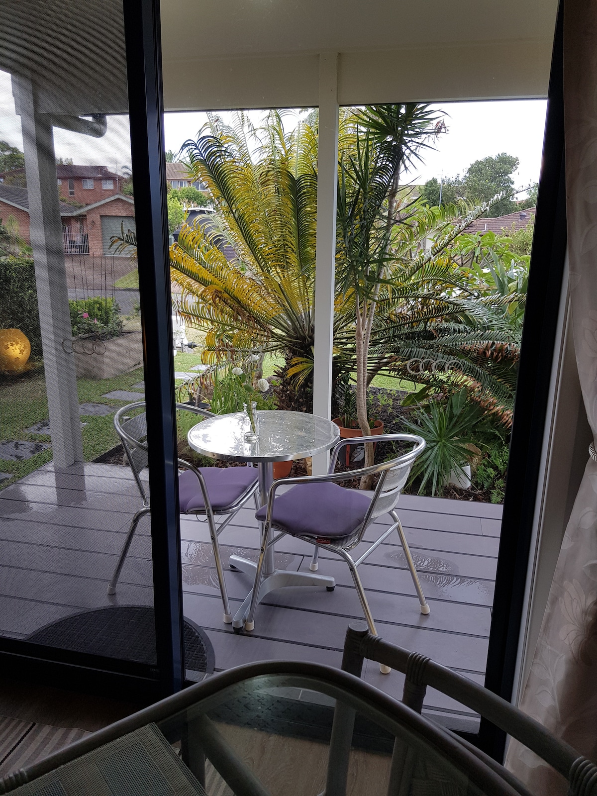 Quiet residential street 15mins walk shops, restaurants & bay beaches. The ground floor bedrooms of our home converted into a self contained visitors suite. You have a separate entrance from your sunny deck looking out to the street over the front garden. The kitchenette is designed for the convenience of travellers light meal preparation only. Renovated, bathroom ceiling & floor heating, comfort of 2 ceiling fans, A/C, WIFI, TV, BT speaker, purified water. Secure screens for breezes.