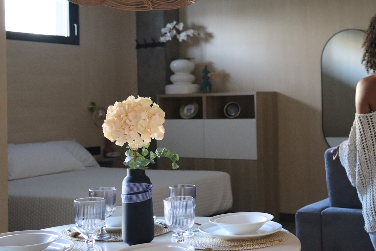 Encantador estudio, recién reformado y decorado con estilo moderno. Cuenta con todo lo necesario para disfrutar de una agradable estancia muy cerca de la principal playa de SANXENXO. Dispone de una estupenda TERRAZA muy íntima y tranquila. El apartamento, tiene 30 m2 y una excelente ubicación a escasos metros de SILGAR, el supermercado y demás servicios. Todo a pie. Se dispone de AIRE ACONDICIONADO, PLAZA DE GARAJE, sofá cama, WIFI, ascensor (es necesario subir el último piso a pie).