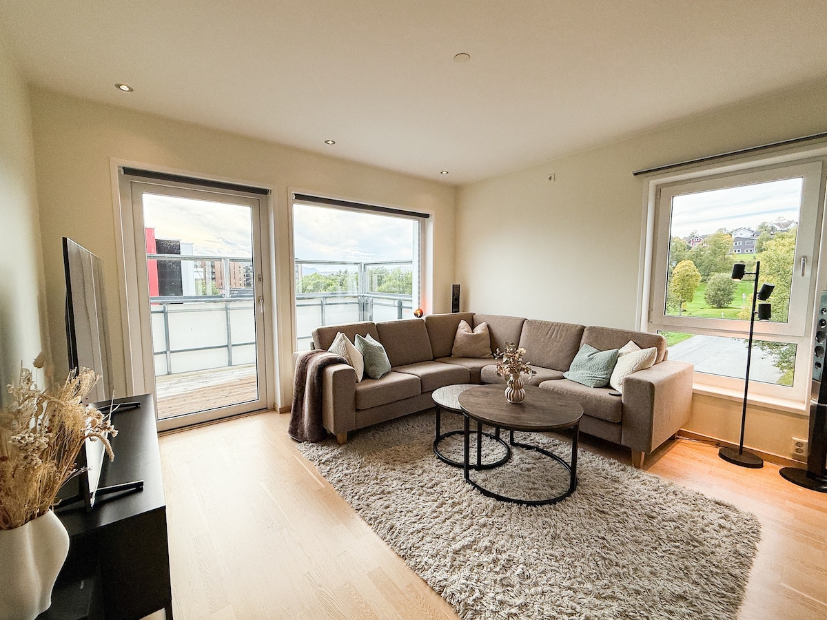 High standard, modern apartment with fantastic sea, mountain and city view. Enjoy northern lights or the midnight sun from the apartment window or the terrace. From here you have easy access to both city life, the sea and mountains. The apartment is a 10-15 minutes drive from the airport.