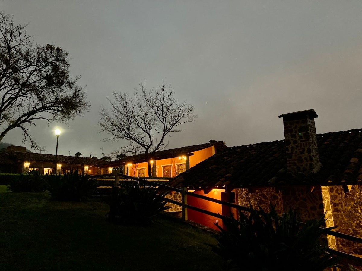 Quinta colonial para disfrutar con la familia con grandes espacios abiertos que ofrecen seguridad y limpieza durante esta pandemia. Confortable casa que conjuga lo rústico con lo moderno y la tranquilidad de la naturaleza. Decorada con artesanía mexicana y poblana. 1,500 metros de jardín, WI-Fi, 4 tv's con cable Localizada a 5 min caminando del centro de Zacatlán.