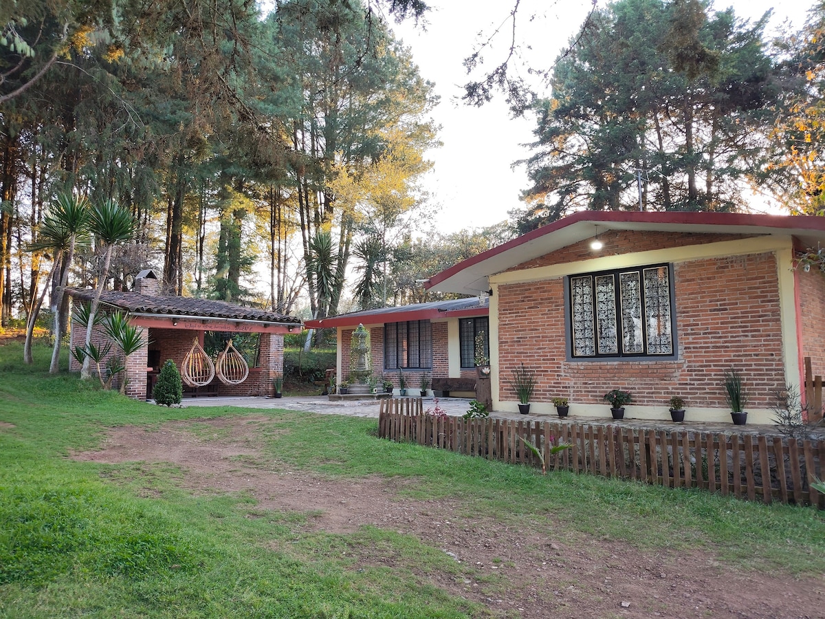 Quinta colonial para disfrutar con la familia con grandes espacios abiertos que ofrecen seguridad y limpieza durante esta pandemia. Confortable casa que conjuga lo rústico con lo moderno y la tranquilidad de la naturaleza. Decorada con artesanía mexicana y poblana. 1,500 metros de jardín, WI-Fi, 4 tv's con cable Localizada a 5 min caminando del centro de Zacatlán.