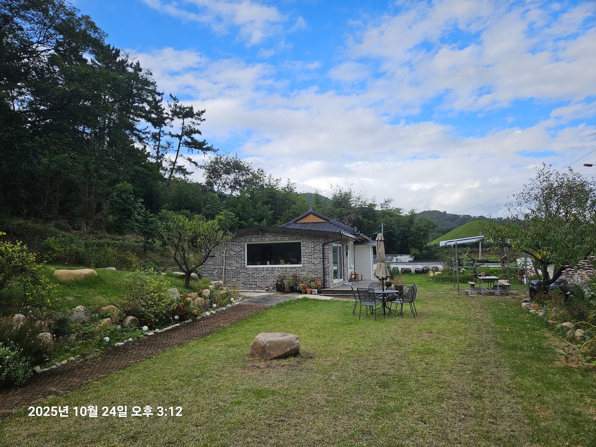 Hello! Our house is a single unit house in a quiet rural town of Gyeong-ju. It was built in 2017. In the garden, we are planting grass and flowers with pleasure. My home could be a peaceful place to rest of you with family or friends.