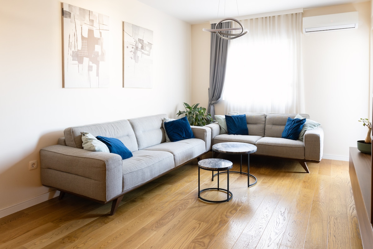 Enjoy a cozy stay at this centrally-located place.Supermarkets ,bakeries,restaurants and green market couple minutes away, beach 10 min on foot.You will find all amenities for a pleasant vacation.Both rooms have AC.There is a washer-dryer in bathroom as well as dishwasher so you can make most out of your time.Kitchen is equiped with all essential cookware, stove,oven,kettle,blender for smoothies and moka pot.Fast wi-fi ,dedicated work desk and comfy,ergonomic chair at your disposal…