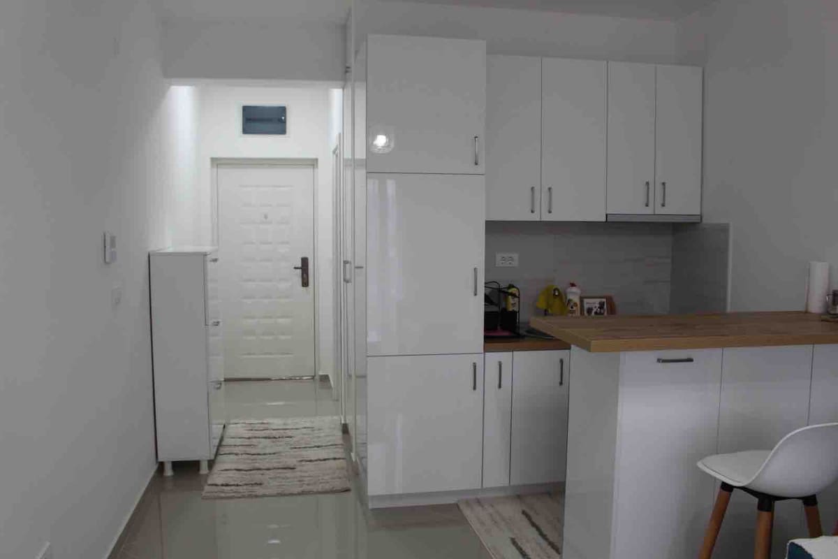 Hi there! Welcome to my newly renovated apartment located in central area of Bar, with 10-min walk to the beach. A lot of stores in vicinity as well, and there's bus station right in front of the building. The apartment is on the 4th floor with astonishing view and there's an elevator :) For any questions, don't hesitate to contact me!