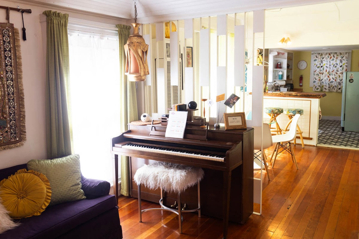 A stylish upstairs apartment, where mid-century modern design meets playful tiki vibes and vibrant art! This unique space offers a stunning view of Castle Rock, providing the perfect backdrop for a relaxing retreat. Located in the heart of downtown and steps away from Bisbee's best restaurants, galleries, bars, and shops, you’re perfectly positioned to explore all that Bisbee has to offer. After a day of adventure, return to this peaceful haven with a view, where comfort and style await.