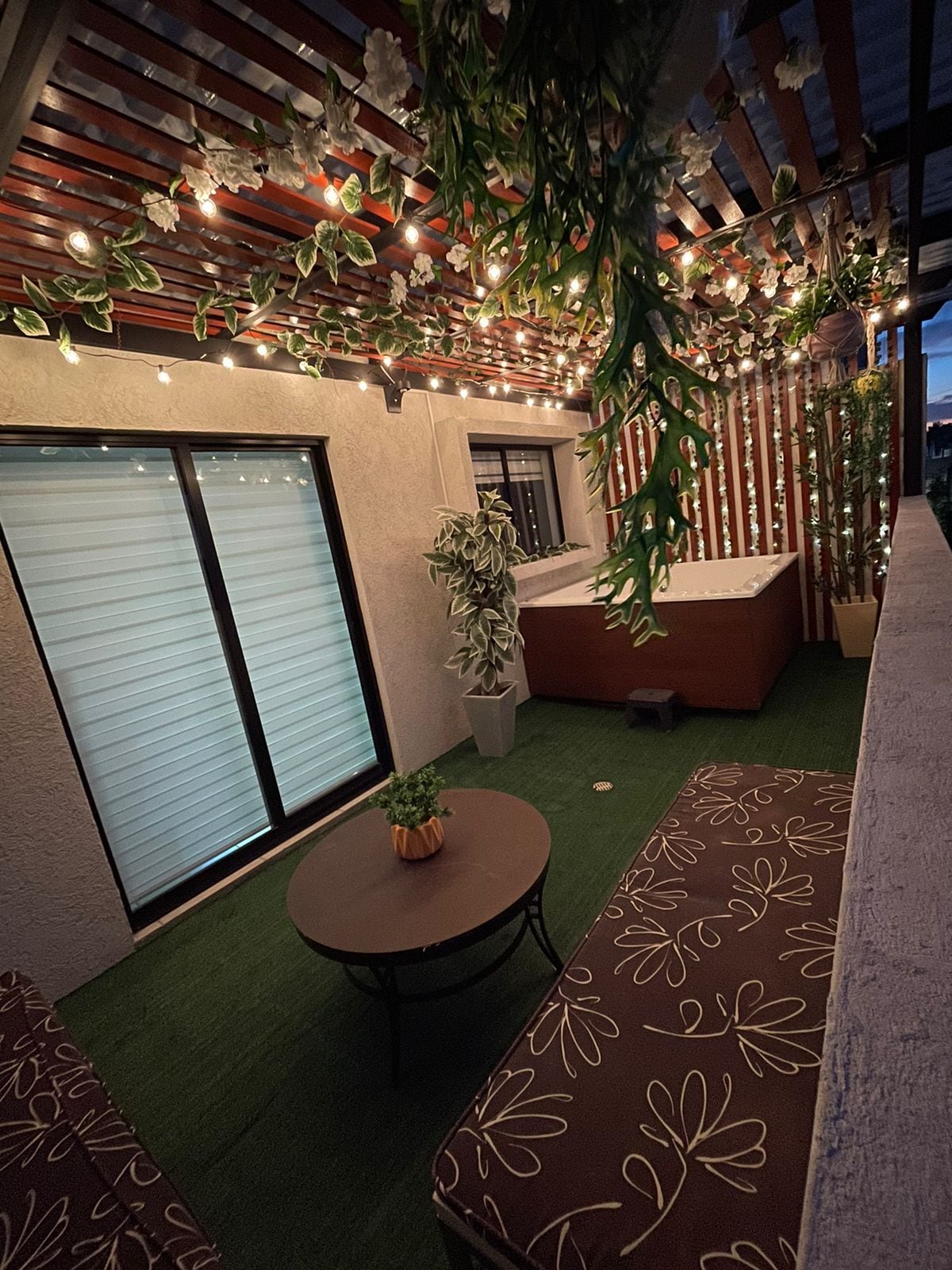Welcome to your spacious home away from home in the heart of La Americana neighborhood! This stunning unit is the perfect retreat for families or groups of friends seeking comfort, style, and privacy. The highlight of this unit is undoubtedly the private outdoor jacuzzi, which is perfect for soaking in after a day of sightseeing or shopping. Surrounded by lush greenery and comfortable seating, it's the perfect place to unwind and enjoy some quality time with your loved ones.