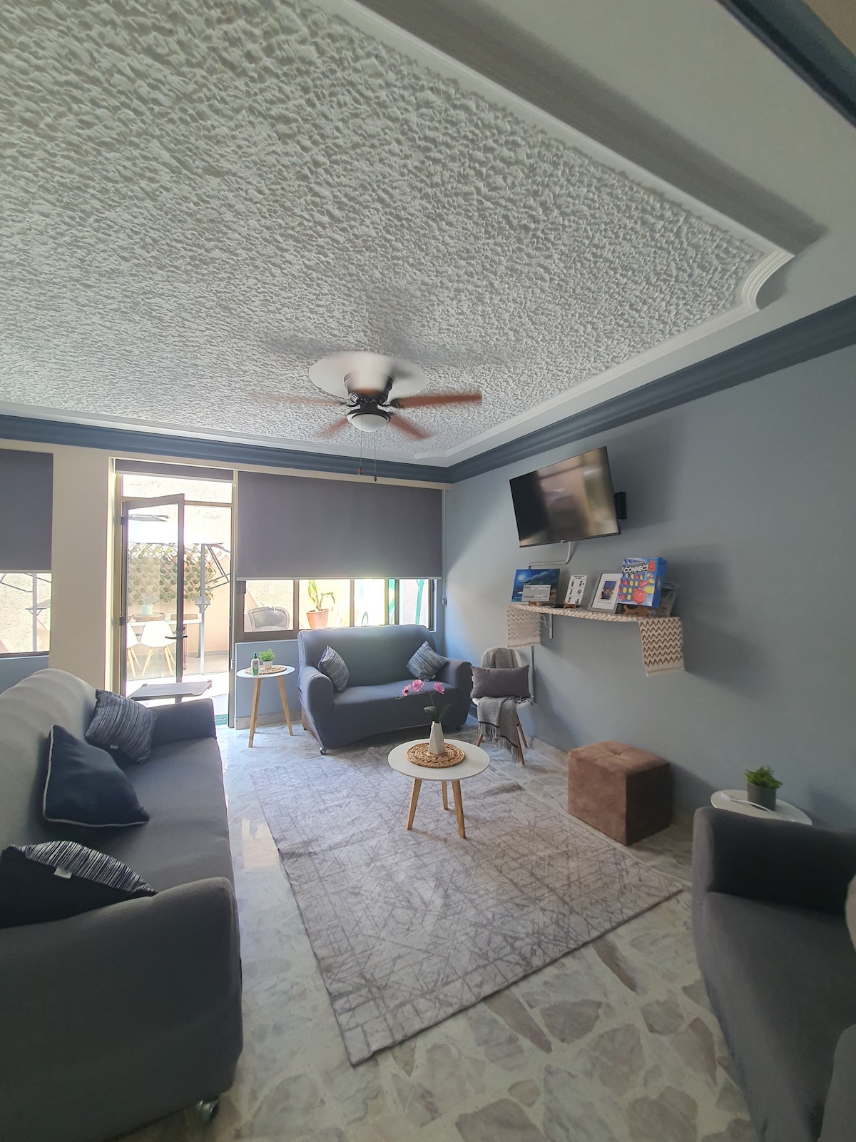 Spacious, cozy apartment, ideal for working with excellent internet! 100 Megas.Two large bedrooms both with air conditioning, full bathrooms, walk-in closet, and ceiling fan. TV room where a fifth person can sleep. Living+dining room with a large window, and 4 portable fans to move around any area. Fully equipped kitchen includes dishes for 6 people. Previous guests have praised our apartment for its stylish decor, comfortable amenities, and prime location near vibrant cafes and restaurants.
