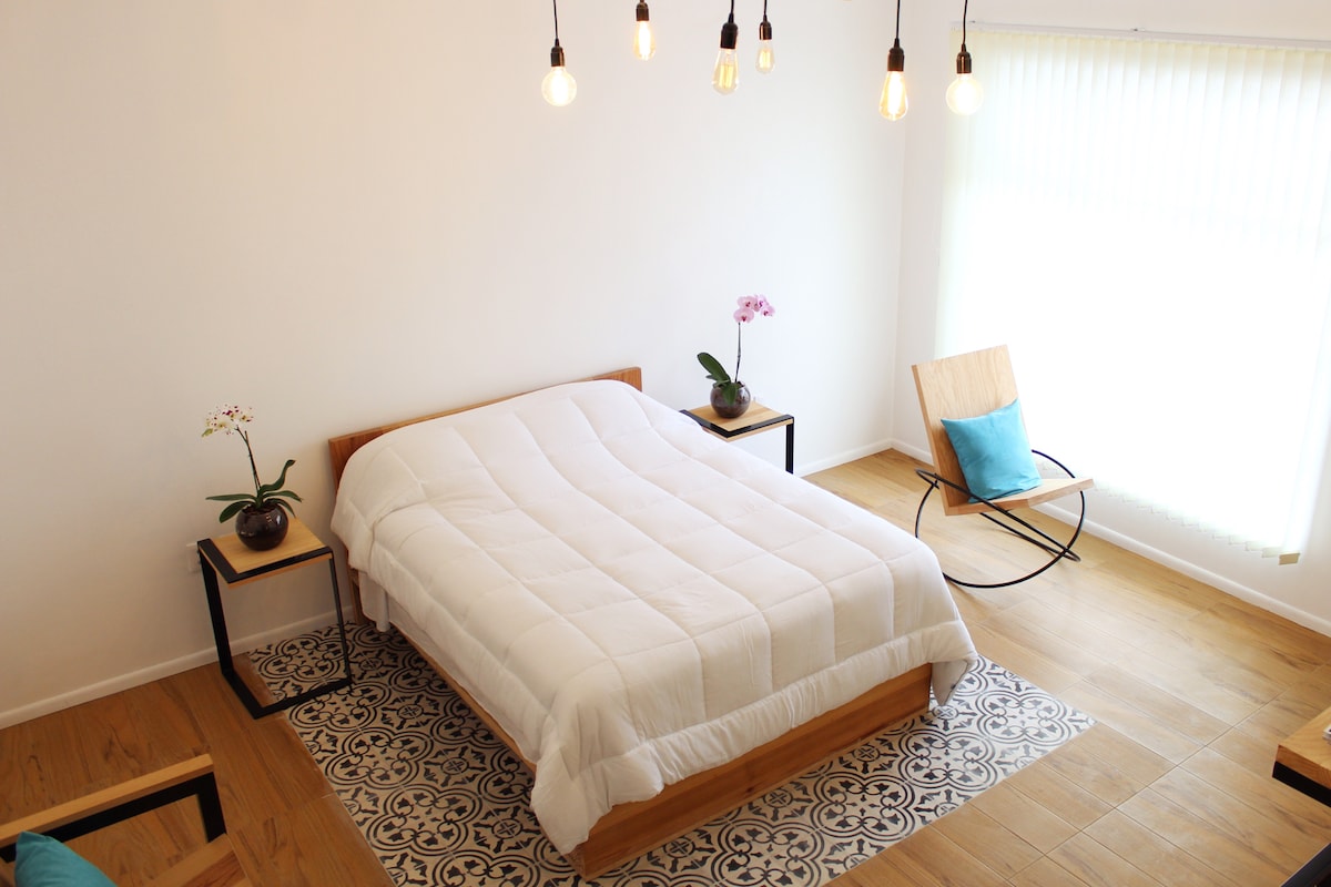 Espacio amplio y artístico. Con dos camas matrimoniales muy cómodas, es perfecto para descansar en pareja, con amigos o en familia. El lugar combina arte y calidez para que te sientas como en casa. Ubicado en zona céntrica, tendrás fácil acceso a transporte, comercios y eventos. Ideal para viajes de trabajo, visitas familiares o escapadas de fin de semana. ⚠️ Reserva para el mismo día sujeta a disponibilidad ⚠️Mencionar hora estimada de llegada ⚠️Indicar numero exacto de personas en la reserva