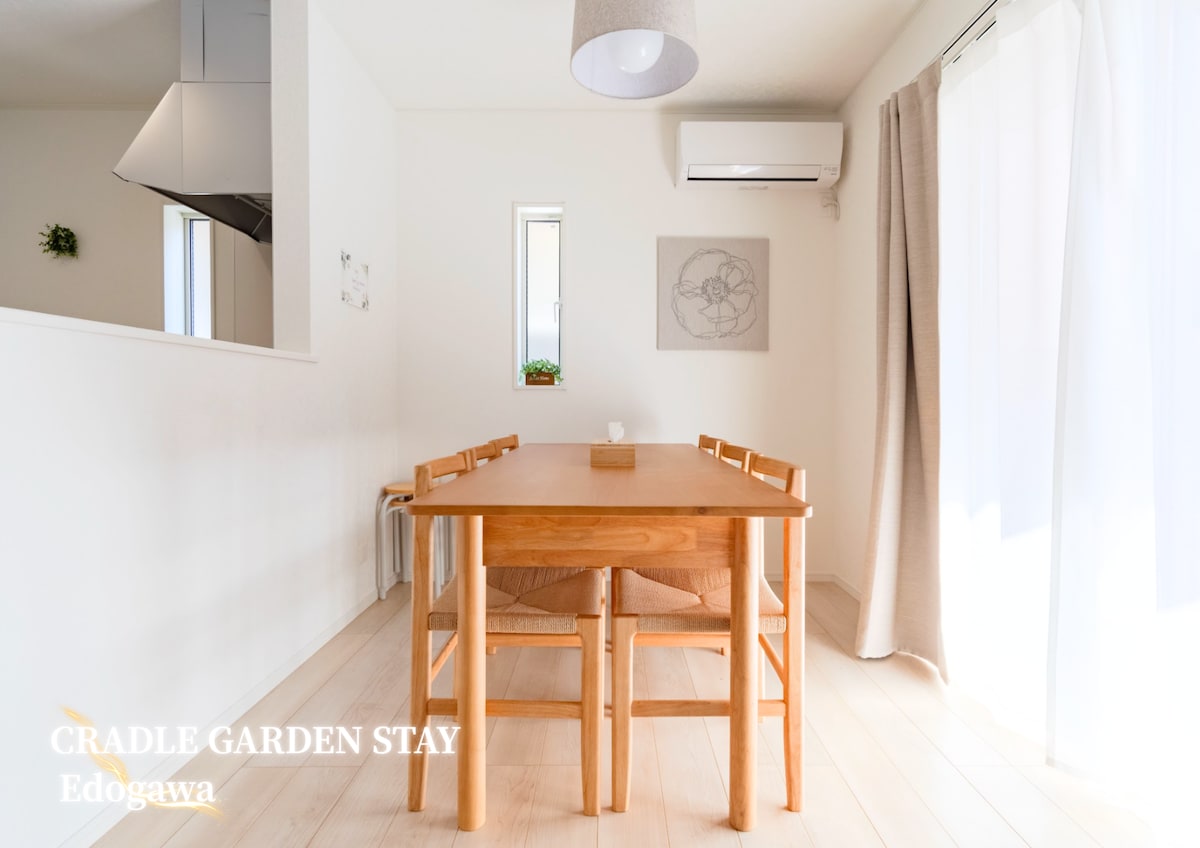 一軒家貸切 日光高速道路・土沢インターから車で2分、駐車場は2台分完備 電気自動車用充電コンセントも完備しており、車でのアクセスがとても便利です。 快適な設備 全室エアコン完備で、リビングに大型ガスファンヒーターを設置。浴室には浴室暖房もあります。 キッチンは食洗器やスチームオーブンがあり食器類も豊富、2つのトイレも完備。無料で使える洗濯機やガス衣類乾燥機があり、長期滞在にも便利です。 充実したアメニティ タオルや歯ブラシはもちろん、髭剃りやヘアブラシもあります 紅茶、コーヒーもご自由にお飲みください 寝具 シングルベッド6台 ダブルベッド1台 娯楽設備 庭では夜9時まで手持ち花火を楽しめ、2階のベッドルームにはプロジェクターを完備。Netflix視聴も可能で、映画や動画もお楽しみいただけます。 観光に便利な立地 日光や宇都宮への観光拠点として最適。東照宮まで車で15分、中禅寺湖まで30分、大谷石資料館まで25分の便利な距離です。 車で5分以内にドラックストアやコンビニ、スーパー。カフェがあります 那須にも車で1時間半程度で行くことができテーマパークや自然を楽しめます