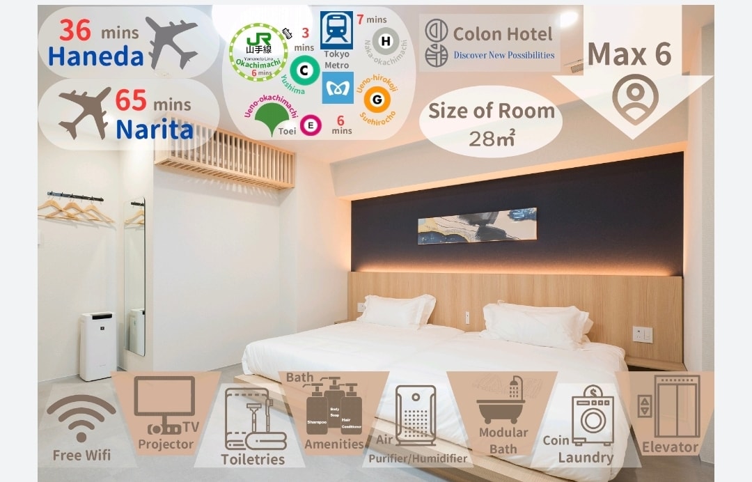 301#JR秋葉原步行8分鐘/上野阿美横丁步5分/电梯/双床房/独立浴室/高清投影仪/空调美容莲蓬头