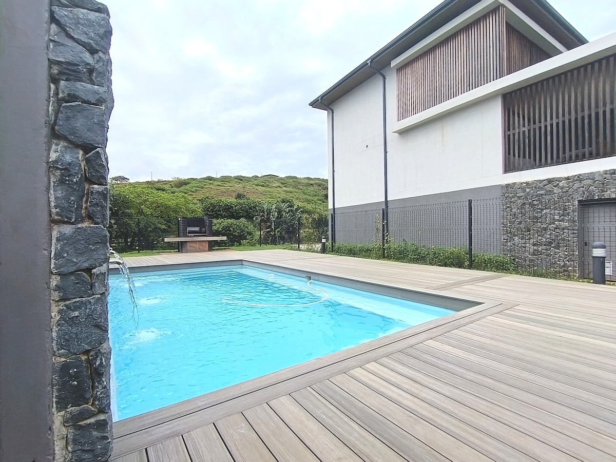 This newly renovated modern unit is RIGHT OPPOSITE THE BEACH and is for families getaways! Inverter provided for uninterrupted entertainment. Private pool & garden, quiet peaceful beach stretch, safe & secure complex. Offering breathtaking, unsurpassed, 180 degree sea views! Wake up to a beautiful sunrise and watch dolphins dancing in the waves. Fall asleep to the therapeutic sounds of the ocean - pure bliss! 10/15mins from the airport, umhlanga or ballito. No parties or events are allowed.