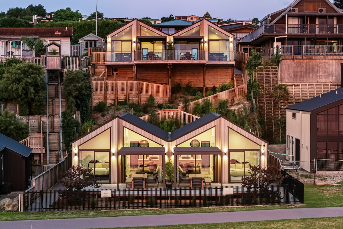 Enjoy stunning lake views from this quiet and peaceful setting in the hills above lake Taupo close to the picturesque village of Kinloch. Detox from all technology and unwind. Your bespoke hideaway is designed for ultimate relaxation. Take in the view from your private hot tub or snuggle indoors by a warm, cosy fire on those cooler nights.