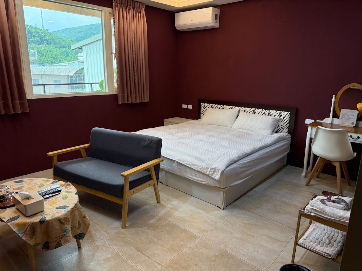 慢慢民宿唯一一間雙人庭院房,設計為簡約銅鑼鄉村風,採用原木雙人床及原木日式茶席,房裡提供書籍給來住宿的旅人能享受閱讀的樂趣,而房裡的小角落更能好好讀完一本書呢,也歡迎您能親自來一趟輕旅行。