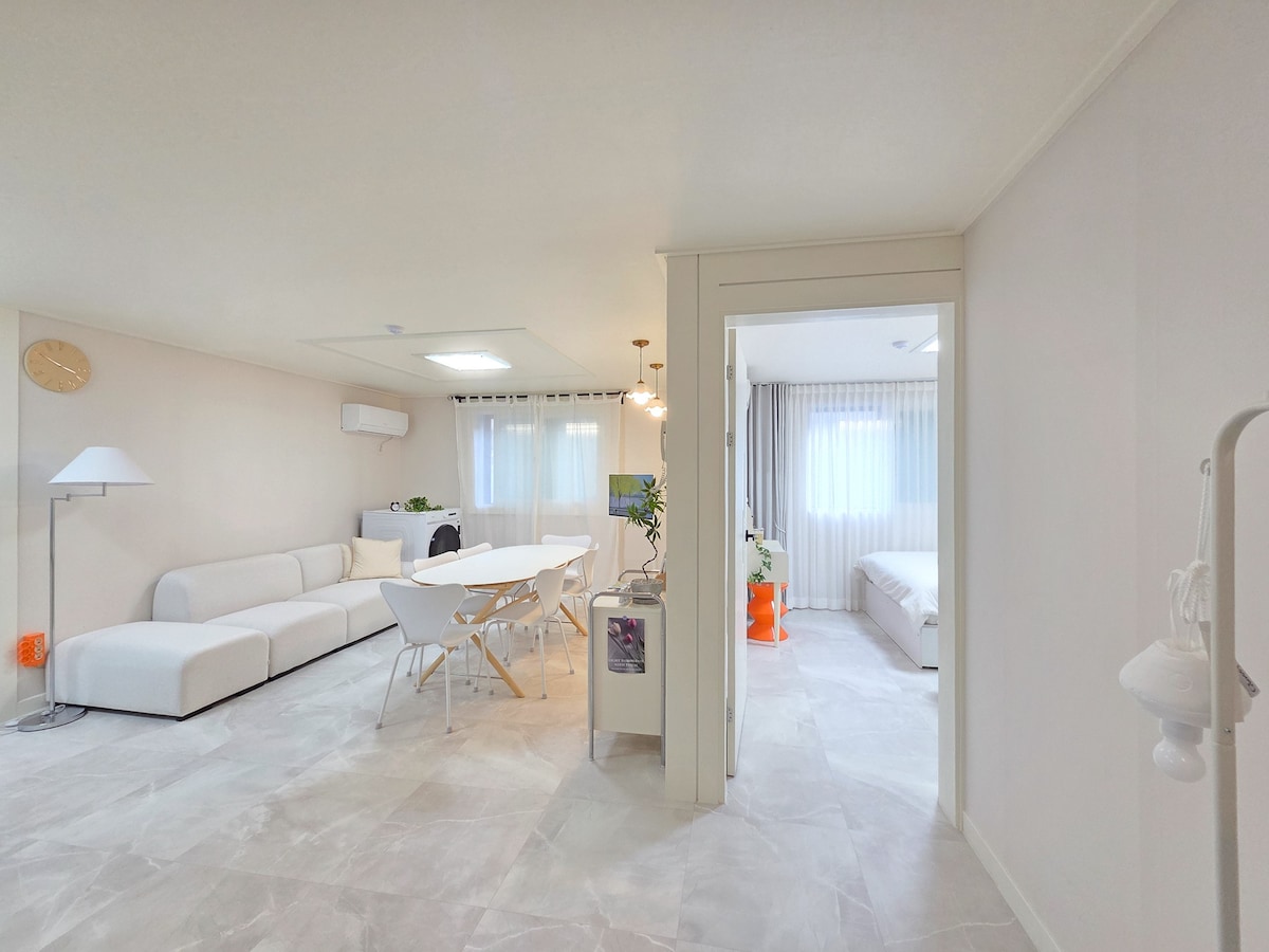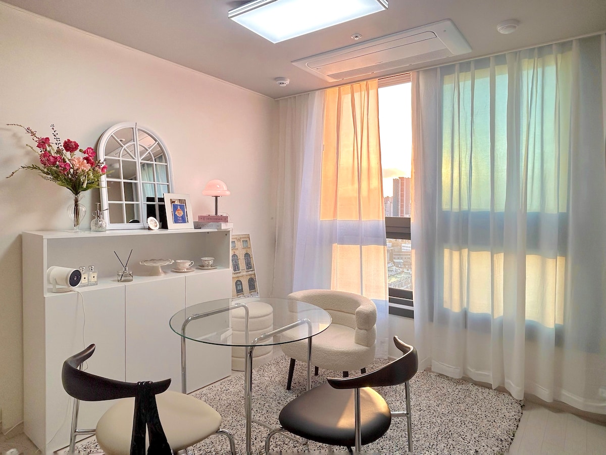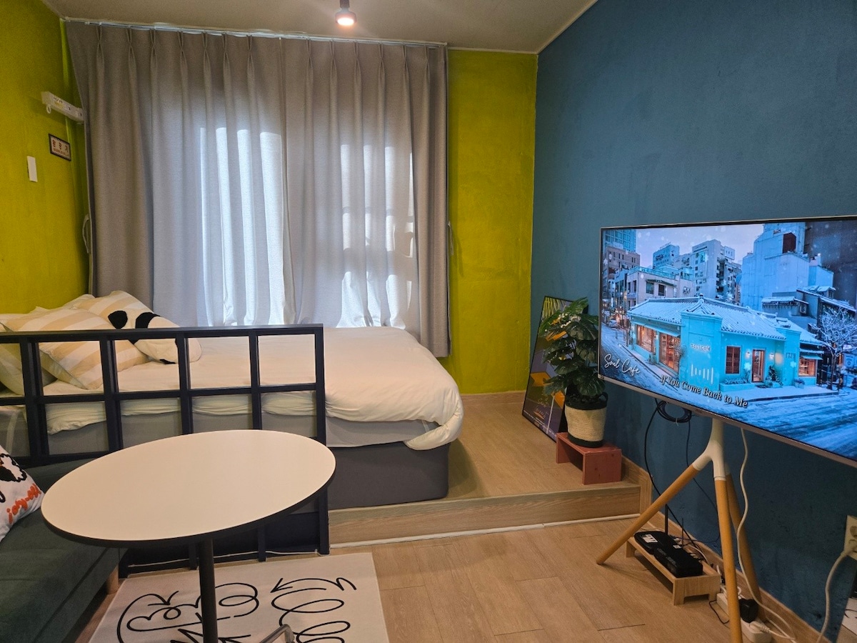🍭“더보기” 클릭 후 숙소 설명을 꼭 읽고 예약 필수 - 건물내 주차 불가(밑에 인근 유료주차장 참고해주세용) - 짐보관 가능🎶 ⏱️체크인 4pm - 체크아웃 11am 입니다. 💎후기 이벤트 참여하면 무료로 13시레이트 체크아웃! 호스트가 직접 관리하는 숙소입니다😁 매일 방역 및 청결하게 유지하고 있습니다. ✔️숙소 옵션 -삼성 스마트 TV -삼성 시스템 에어컨 -초고속 wifi 지원 -삼성 스타일러 -드럼 세탁기 -커피 포트기 ✔️주방 옵션 -인덕션 2구 -머그잔/와인잔 -s접시/m접시 -냄비1개 -조리도구(집게,국자,가위,칼) -수저셋트 저희 숙소는 간단한 조리(라면)만 가능합니다‼️ 참고해주세요!!😉🙏 ❌삼겹살,스테이크, 국, 찌개류, 파스타❌ 화장실 옵션 -핸드위시 -폼클랜징,클랜징오일 -샴프/컨디셔너/바디워시 -바디로션 -화장솜/면봉 -헤어드라이기 고데기