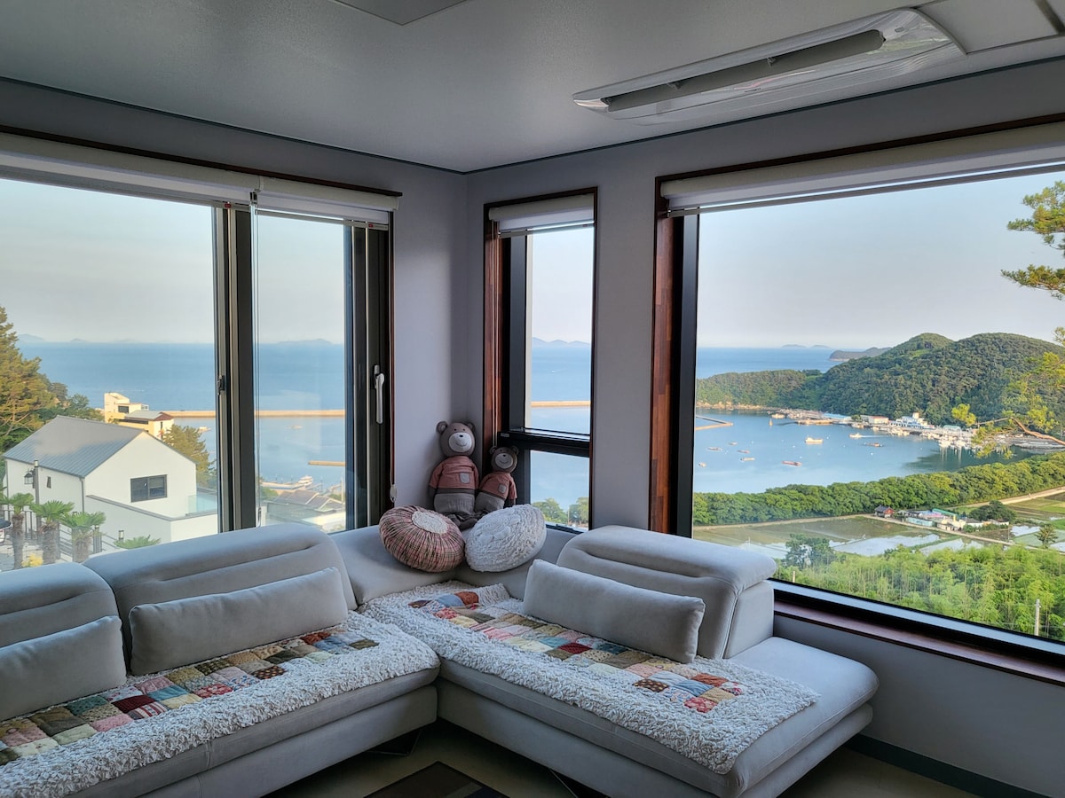 조용한 작은어촌마을 휴식처입니다 정말 시간마다 계절마다 힐링되는 뷰가 멋진곳입니다 게스트하우스는 원룸형이며 통창으로 사계절 멋진 풍경을 마음껏 느낄수있습니다 관리동(호스트생활공간으로 마주칠수있습니다)을 제외한 모든공간(수영장 마당)과 소품장비등등 단독사용하십니다 2인숙소입니다 인원추가문의 받지않습니다 마당에서 즐기는 바비큐와 불멍 집앞이 바다여서 바다보면서 즐기는 모든순간 집앞낚시와 통발로 잡는 장어 가족과함께 연인과함께 온전히 힐링되는 시간 가져보실수있습니다 입실시간에 펼쳐진 노을과 아침의 푸른바다 밤에는 별빛가득한 밤하늘 어촌마을한바퀴 산책하시면 4계절의 자연을 마음껏 느낄수있어요 힐링가득한 시간되시길 바랍니다