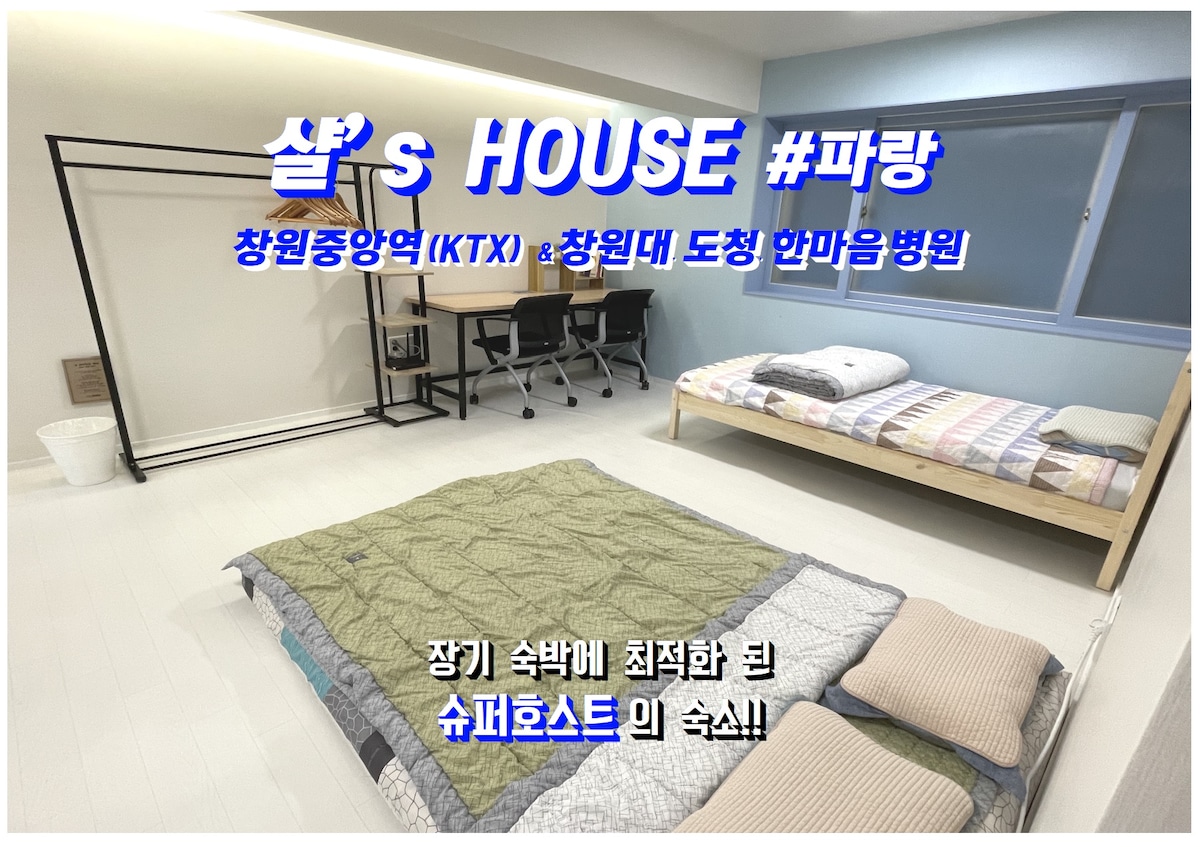 舒适的房源#파랑/庆南道厅、KTX창원中央站、창원大学、韩心医院(仅限女性)