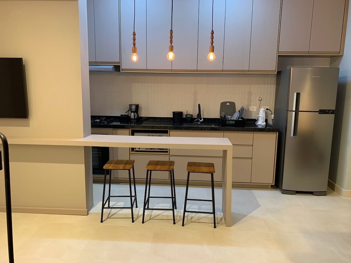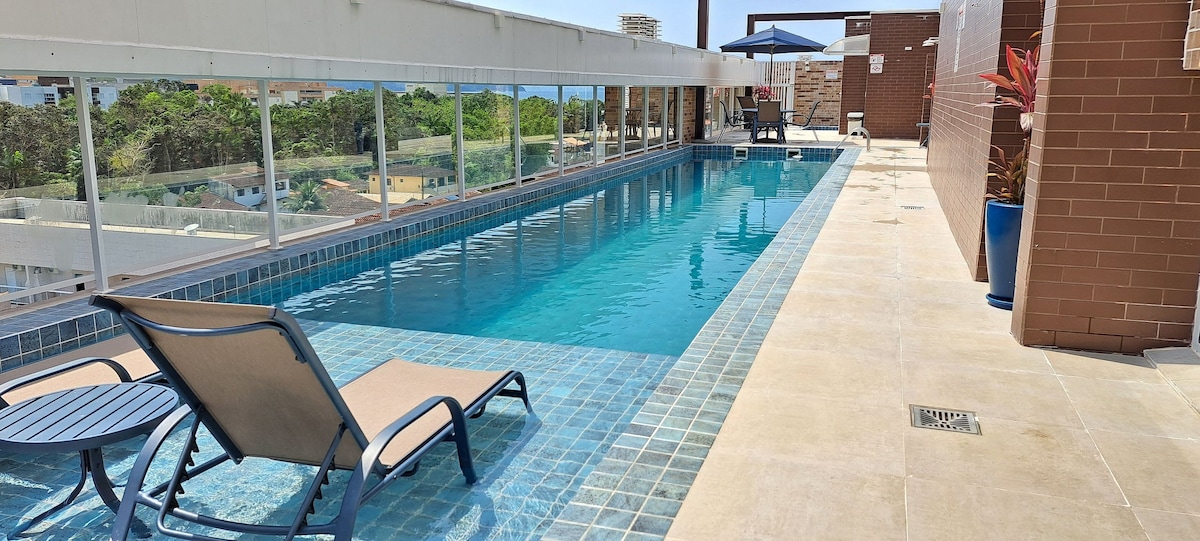 Praia Grande 公寓,靠近海滩,配备游泳池、空调、Wi-Fi 和健身房