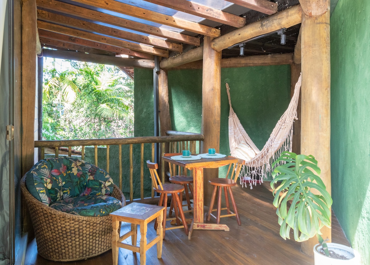 4号小屋,带阳台,舒适的吊床和双人沙发