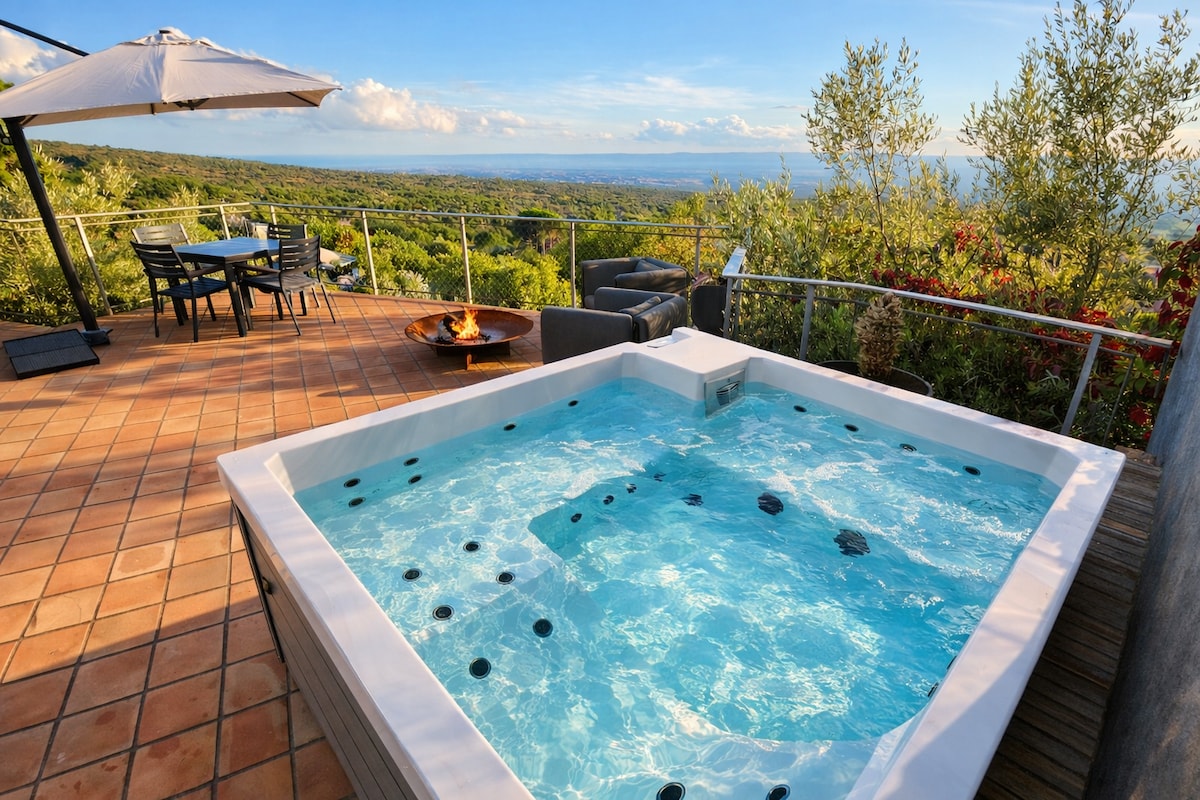 埃特纳豪华私人按摩浴缸37°C和无边泳池