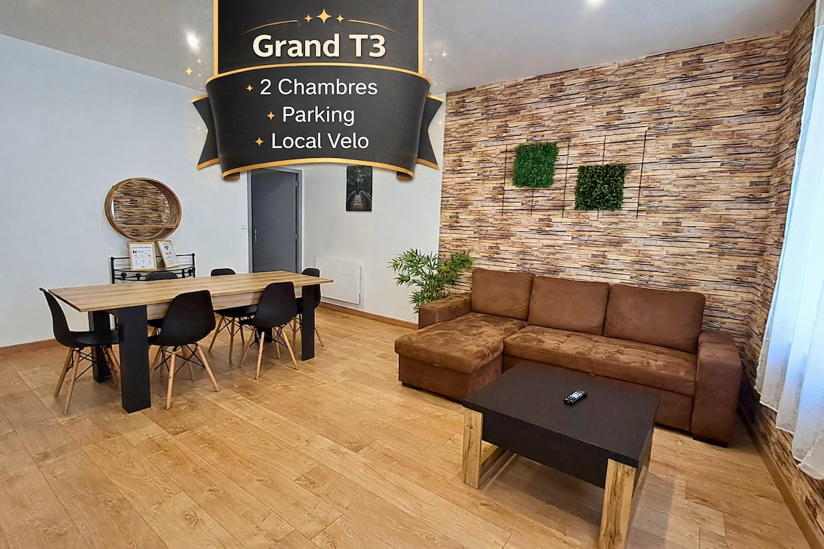 Bienvenue dans ce spacieux T3 idéalement situé en hyper centre d’Agen, parfait pour un séjour en famille, entre amis ou professionnel. Vous profiterez d’un emplacement privilégié à deux pas de la gare, des restaurants et commerces, tout en étant dans un environnement calme et agréable. ✨ POINTS FORTS ✔️ 2 vraies chambres confortables ✔️ Jusqu’à 6 voyageurs ✔️ Emplacement hyper central ✔️ Arrivée autonome (flexible) ✔️ Parking à proximité
