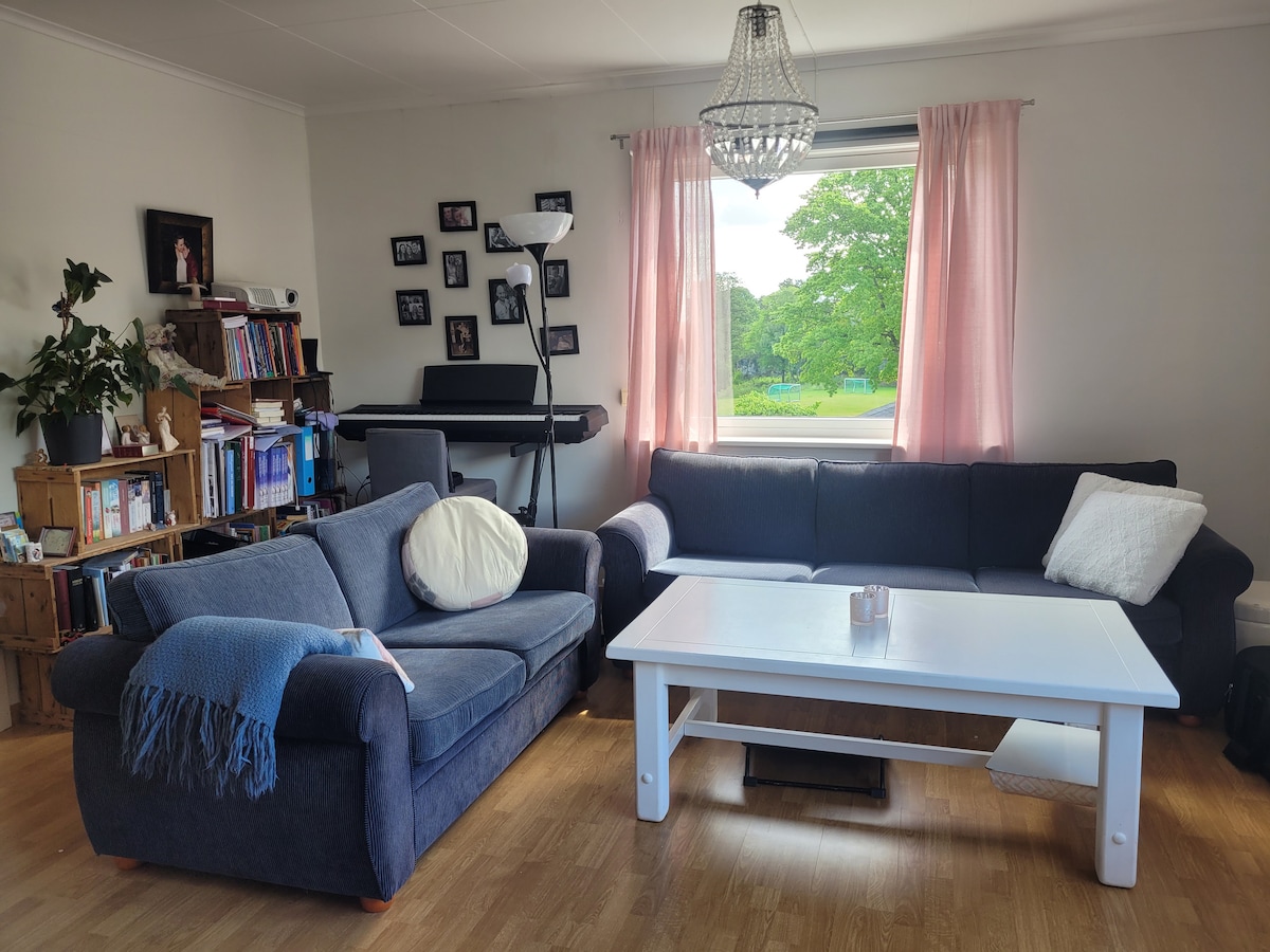 Velkommen til en hyggelig krok på loftet mitt! En ekstra madrass kan legges på gulvet og jeg har reiseseng til barn under tre år. Jeg bor på et rom i leiligheten. Vi deler kjøkken, bad og stue. Huset ligger rett ved matbutikk og busstopp. Det tar 7 min med buss til sentrum. Fine turmuligheter. Kort vei til strand. Dyr er dessverre ikke velkommen grunnet allergi. Vær vennlig og informer dersom du kommer fra et hjem med hund, katt eller hest. Da dekker jeg sofaen med laken.
