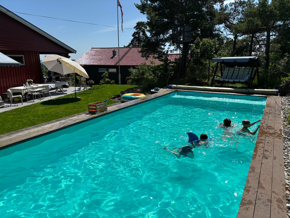 Du kommer til å få et flott opphold på dette komfortable bostedet. 5 soverom med plass til 2 eller flere på vært rom. Store stuer, nytt kjøkken fra 2025 og 2 nye bad. Basseng ute, vestvendt med sol til klokka 2230 om sommeren. Kort vei til brygga i Tønsberg. 5 min med sykkel! Kort vei til togstasjonen. Kort vei til matbutikker. 5 min til Strand! Mulighet for bading, kajakk, fiske osv!
