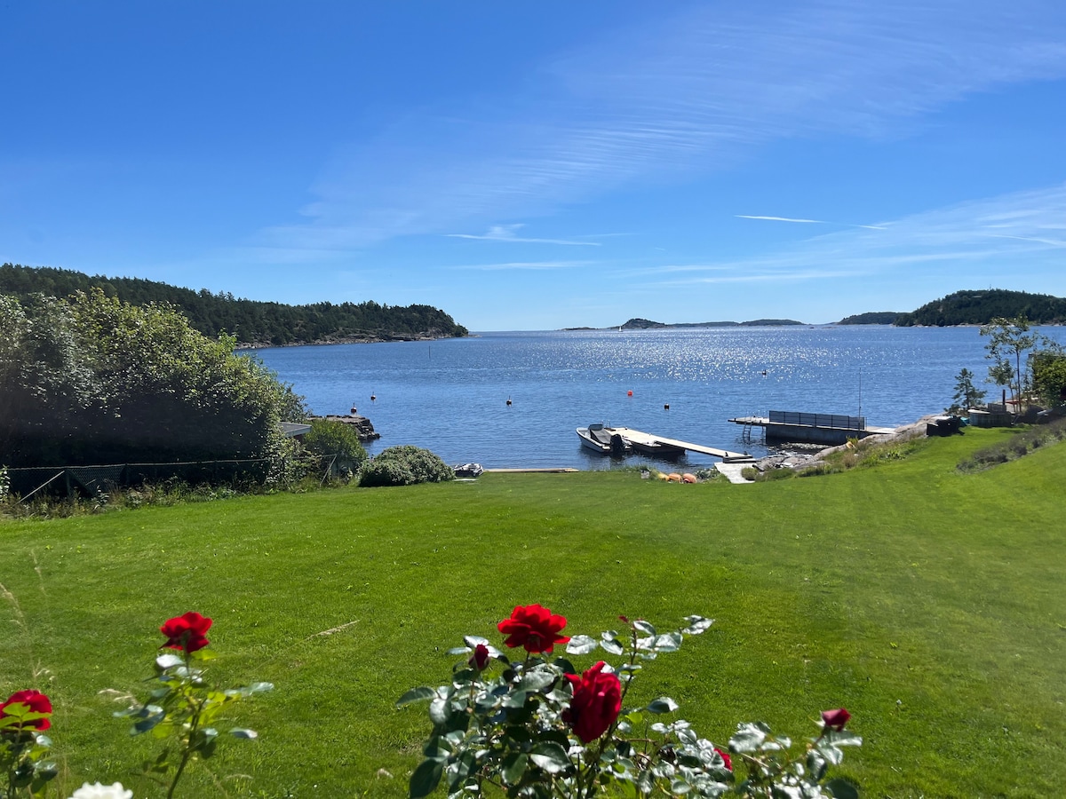 Close to the city in Sandefjord and still you feel that you are staying in the nature. Free parking outside of the apartment. Bus stops 2 minutes walk from the apartment. You will see the fjord from the windows and the boats to Sweden. It takes 8 min to drive to Sandefjord ,12 min to Larvik. Torp airport is 15 min. Put on your hiking boots and walk direct onto the hiking track and use kyststien. New 65 inchTV and high speed internet. When outside, there is noticeable traffic passing by.