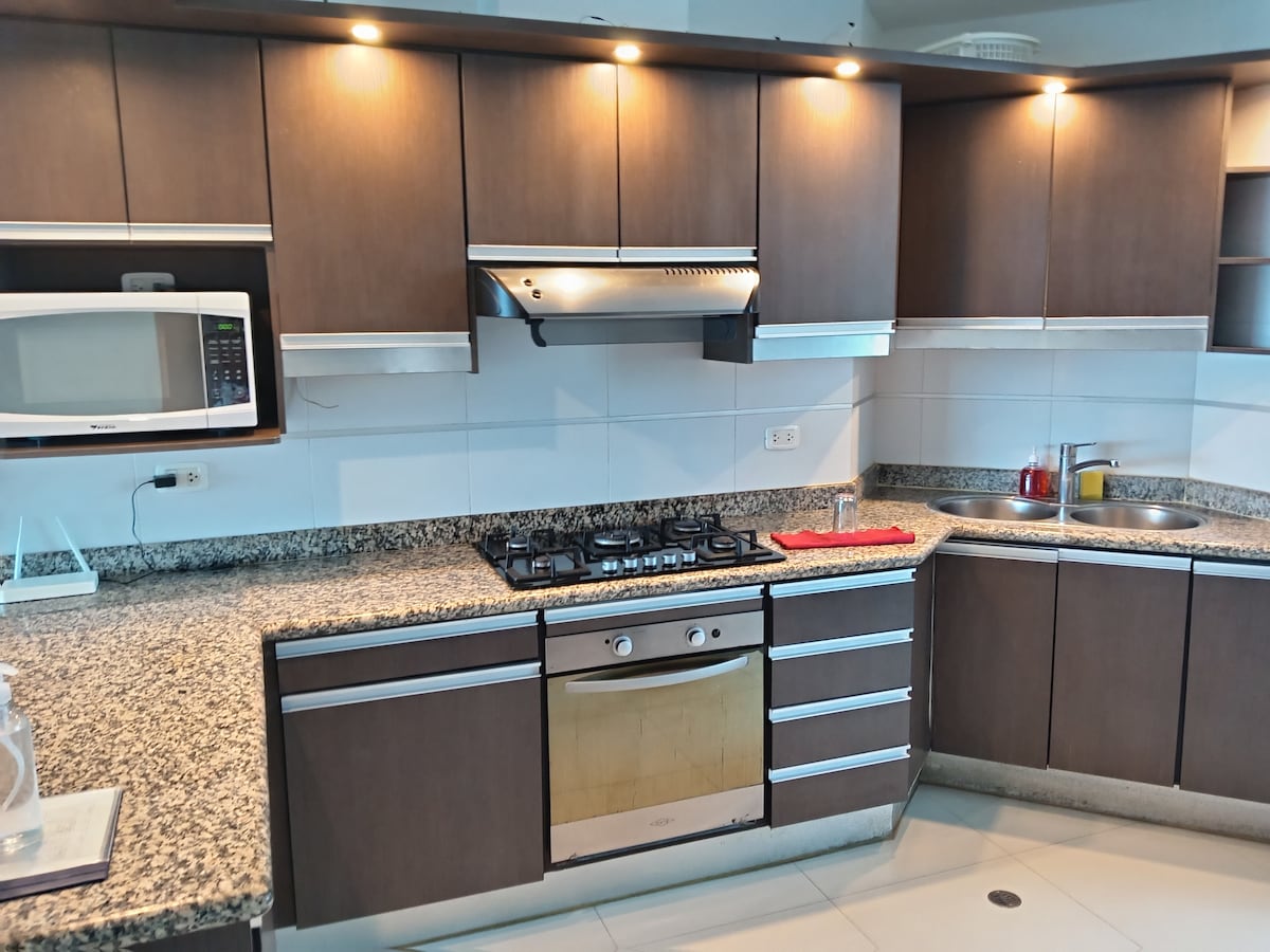 Departamento exclusivo de lujo, confortable para la familia, con guardianía 24/7. Cerca al Malecón de Tonsupa, con vista directa al mar y a la ciudad. Piscina, cancha de tenis, chozones, homework, carpa y sillas de playa.