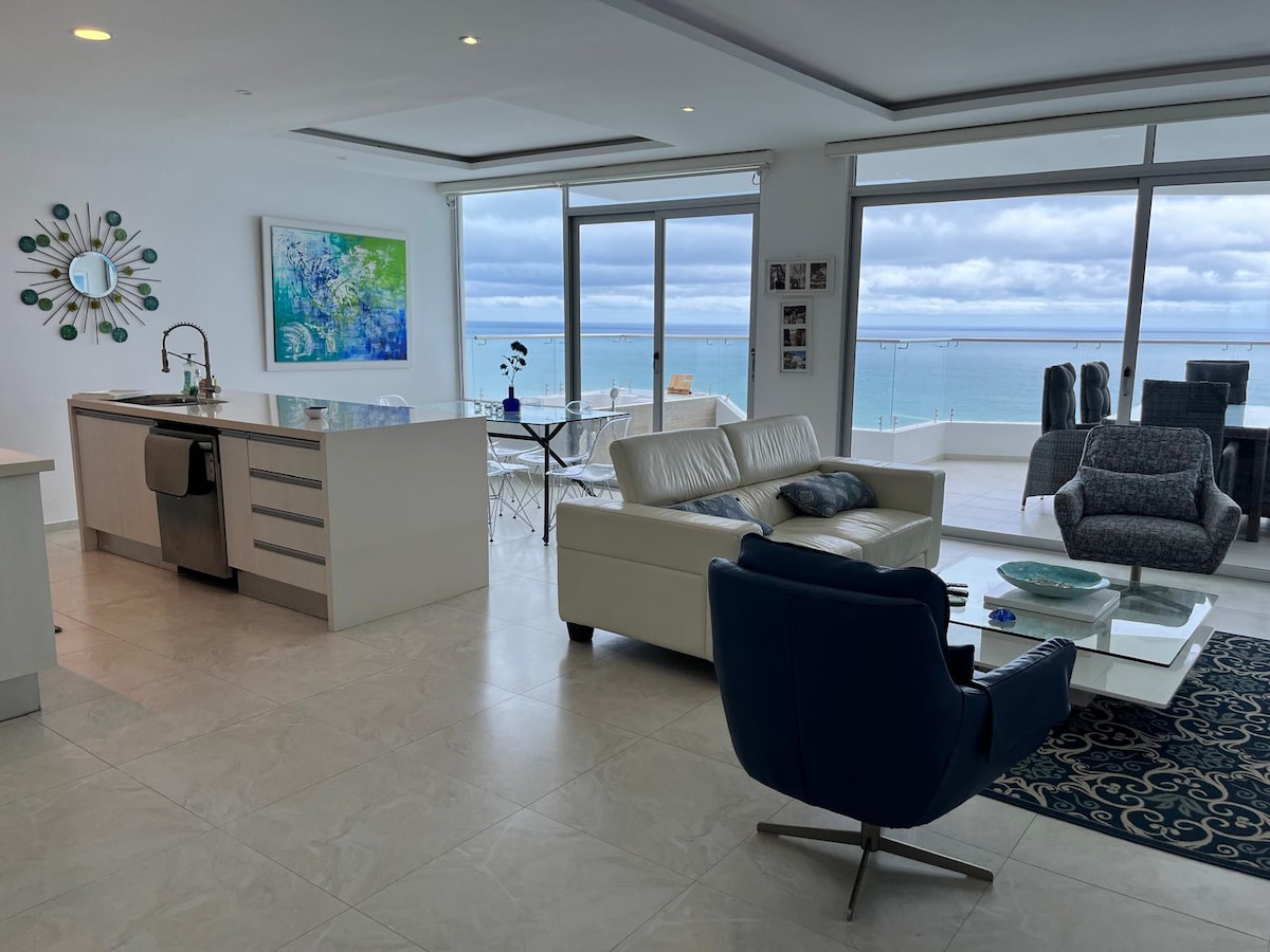 Las fotos hablan por si solas, si buscas algo, aquí lo encuentras todo, vista, tranquilidad, seguridad, consentir a tus seres queridos así como a ti mismo, este es un lugar único en todo sentido, departamento de 2 dormitorios de lujo, 2 baños completos, cocina, comedor , sala y fabulosa terraza con grandiosa vista al mar "en temporada se puede avistar a ballenas". Contamos con instalaciones completas como 2 piscinas para adultos y niños, playa privada, cancha de tenis, básquet, restaurante, etc