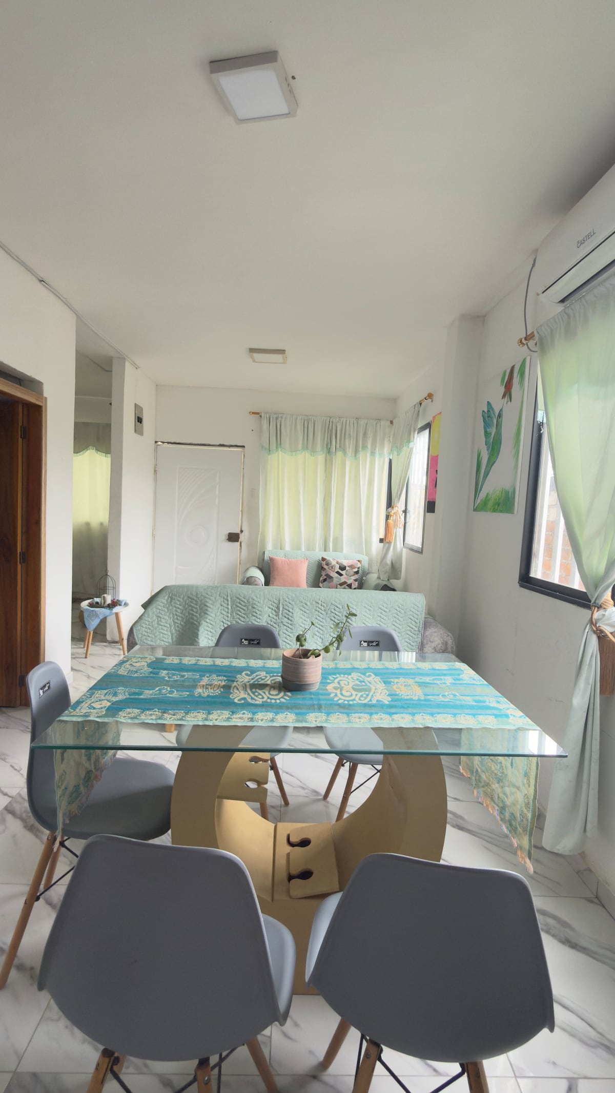 Desconecta de tus preocupaciones en este espacio tan sereno, familiar y acogedor. Ideal para disfrutar en familia con todas las comodidades a pocas cuadras de la playa de Tonsupa, sector Av club del pacifico disponible hasta 8 personas.