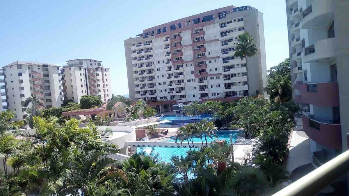 Te invito a unas vacaciones tranquilas y llenas de actividades para compartir en familia. Este es uno de los pocos conjuntos que sigue manteniendo su carácter familiar en medio del movimiento social de Tonsupa. El departamento está en el piso 8 ofrece una vista espectacular, está equipado y amoblado con todo lo necesario para 4 personas. El conjunto cuenta con piscinas, hidromasajes, parques infantiles, canchas, entre otras amenidades (a continuación) e incluso una oficina amplia con wifi.