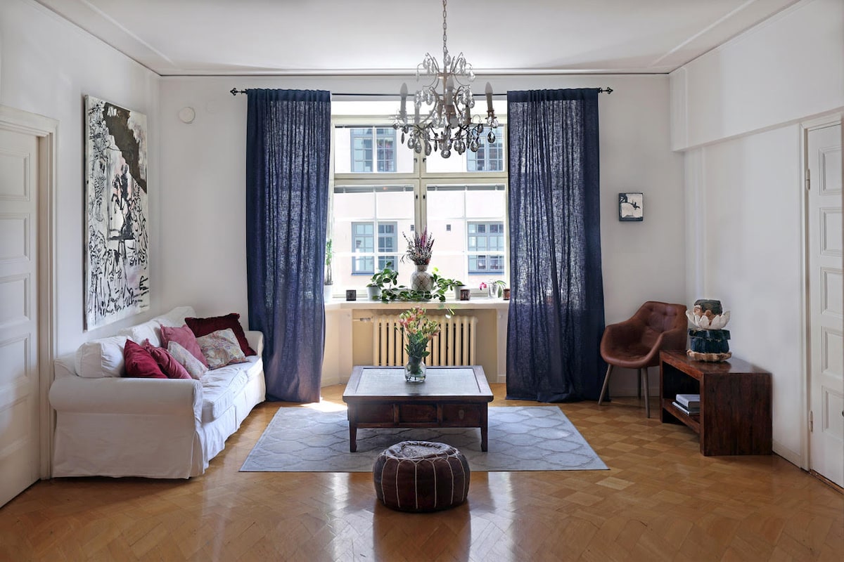 An authentic Nordic living experience awaits you in the Helsinki city center – the perfect space to relax after a long day of sight-seeing or calling your own for an extended period. The apartment is recently renovated and located in an architecturally significant area with several of the Helsinki landmarks right around the corner. The apartment is light, spacious and tastefully decorated – enjoy an art collection containing pieces by Eija Vihanto among others while enjoying your daily meals.