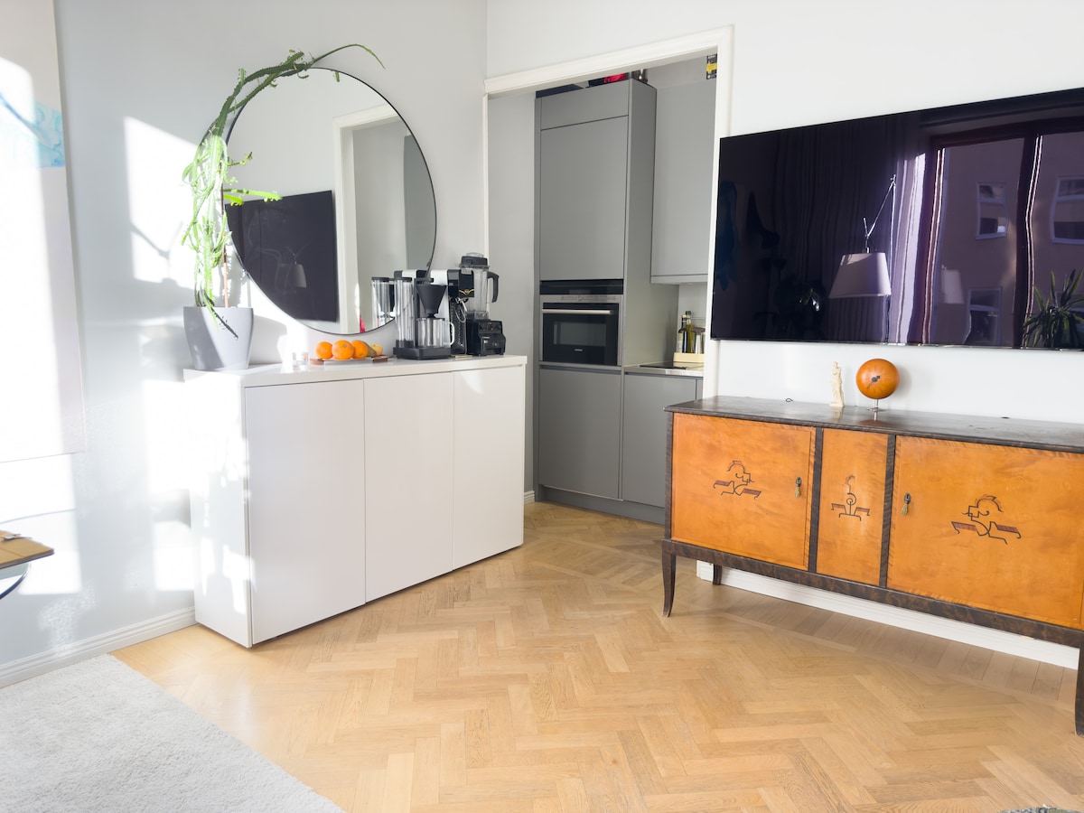 This furnished spacious studio apartment comes with warm colors and a fully equipped open layout kitchen. This studio is well suited for short and long term stays with a spacious layout, large Jugend-style windows, and plenty of closet space. Get the practical things like a fully equipped kitchen, washing machine, fast WiFi, 24/7 support, and regular professional cleaning, and fun stuff like a smart TV. Stay in comfort for as long as you’d like – days, weeks or months.
