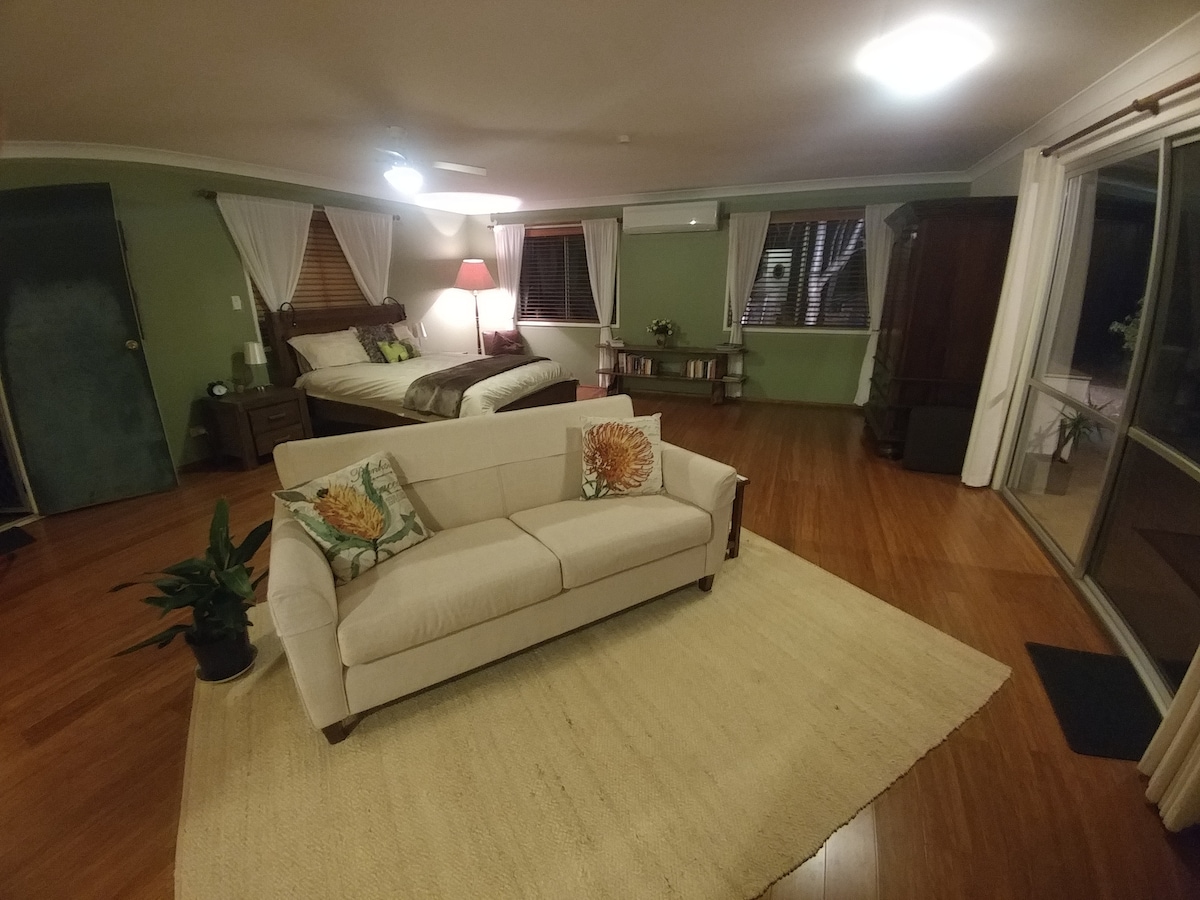 Close to all of your Toowoomba events, this quiet, spacious, studio is amongst nature on the Toowoomba escarpment. It has beautiful views of the Lockyer Valley and distant mountain ranges. It's just 4 min drive to Gabbinbar Homestead, 8 min to the Uni of South Qld and 10 min to the Toowoomba town centre. Enjoy an afternoon drink on the deck and possibly spot a koala, take a dip in our pool. The spacious studio has its own kitchen, internet, fireplace for winter and aircon for summer.