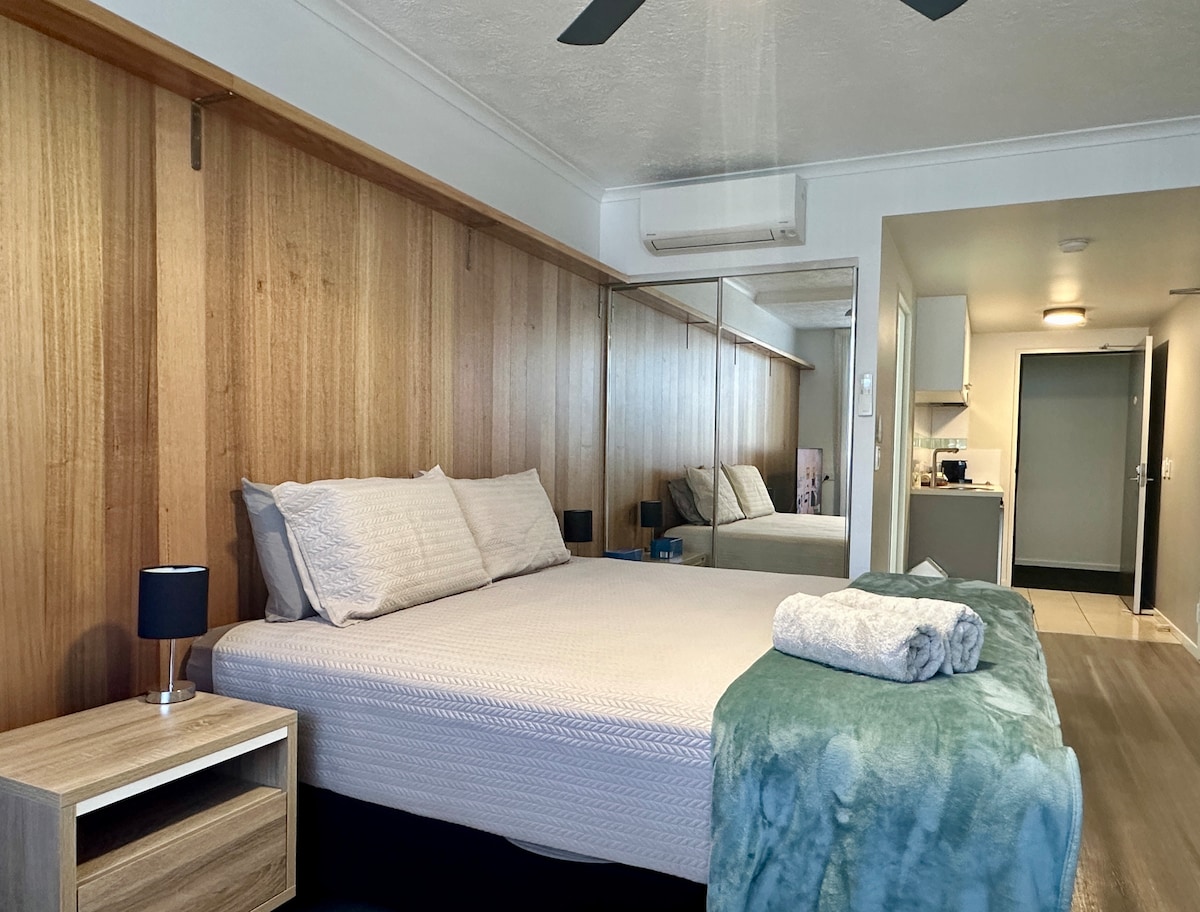 市中心的加大双人床阳台公寓!