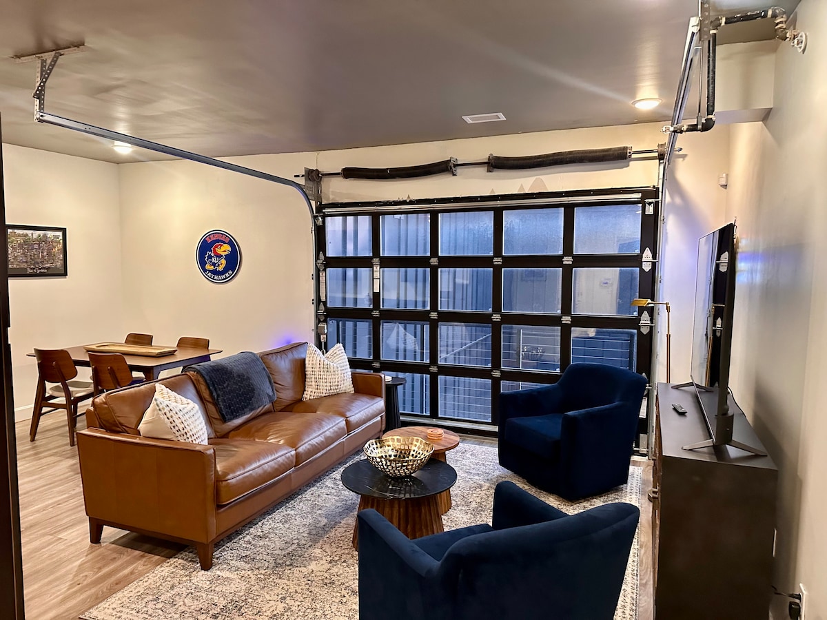 **YOUR SAFETY & 5 STAR GUEST EXPERIENCE IS OUR HIGHEST PRIORITY!** Welcome to the Mass Street Suite! - Located on Mass St. - Suite #3, 600 sqft - Very comfy King Size bed - Modern & Very nicely updated - Comfy & Cozy open layout - Safe & Secure On Site Parking - 3-5min drive to Downtown Lawrence, Allen Fieldhouse, University of Kansas, Haskell University - Basic equipped Kitchen - Smart TV w/ Netflix, Disney+, ESPN+ & more -No Pets Policy -Check out our Junior suite for availability too!