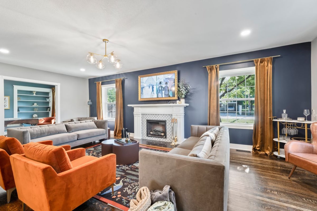 Three bedrooms (one queen and four twin), two tiled bathrooms, a twin-over-twin bunk and a sleeper-sofa. House sleeps nine comfortably. Six smart TV's. Dogs allowed! Large, fenced backyard. Two washers and two dryers. Basement is dedicated playroom and has a large arcade, pool table, skee ball, foosball, basketball machine, Barbie House and play kitchen. Dozens of board games and outdoor toys. Ultra-fast internet. Easy 20-minute drive from both from the airport and Legends Mall and Plaza.