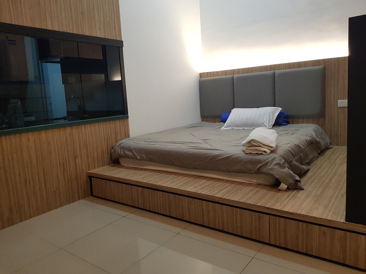 *NEW* DM me the word "New package" to enjoy 8% cashback. Escape to our stylish 2BR condo on the 33rd floor in Johor Bahru. This modern minimalist retreat offers stunning city skyline views and comfortably sleeps 6-7. Perfect for families or business travelers, it features an HD projector with Netflix, high-speed 5G Wi-Fi, and a well-equipped kitchen. Enjoy a unique urban getaway with resort-style amenities.