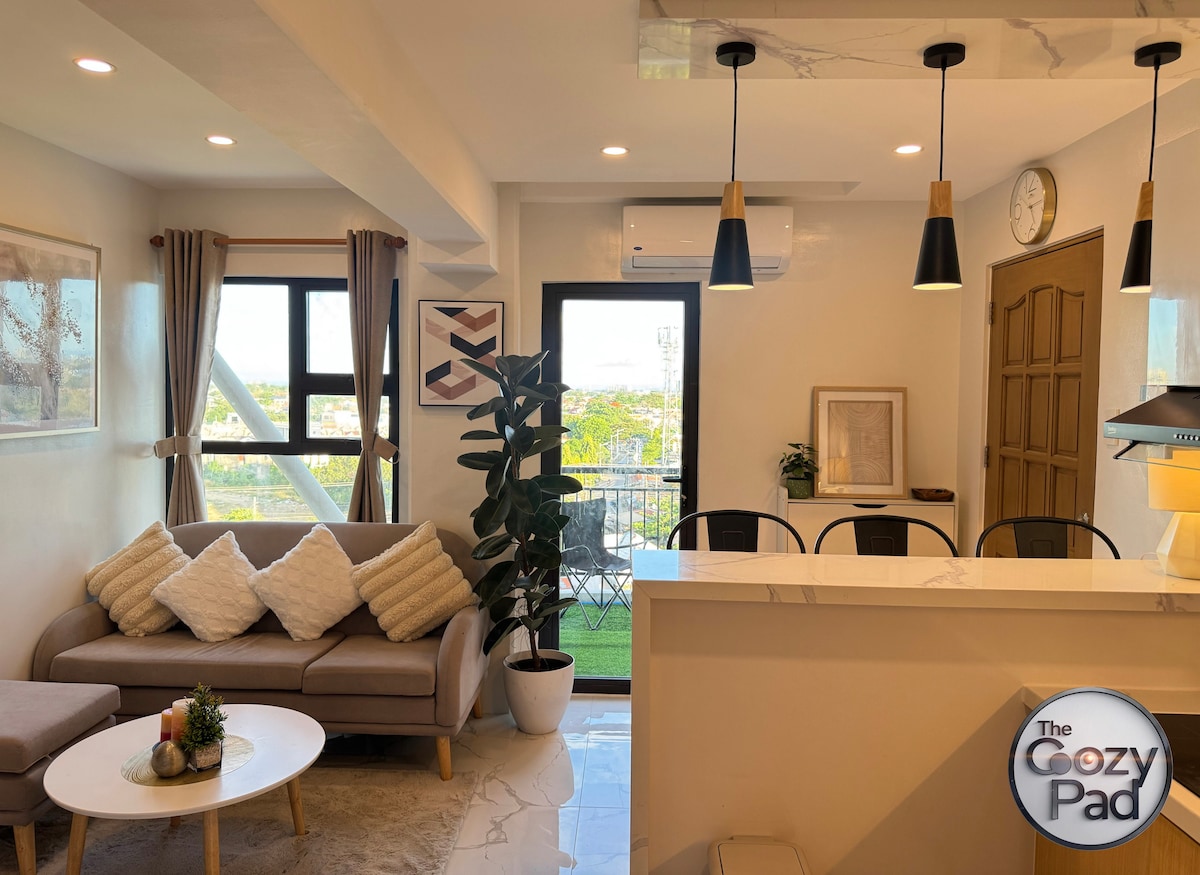 Enjoy a stylish experience at this centrally located place. Relax in this entirely cozy, modern and vibrant condo unit that is conveniently located near Mactan International Airport. Where it is close to everything like restaurants, coffee shops, laundry shops, malls and supermarket. - 3-5 minutes away from Mactan Airport - High-Speed Internet up to 200 Mbps - 65 inches TV with free Netflix - 1 Bedroom w/ 1 queen-size bed & 1 Foldable double size bed - Washing Machine -Fully equipped kitchen