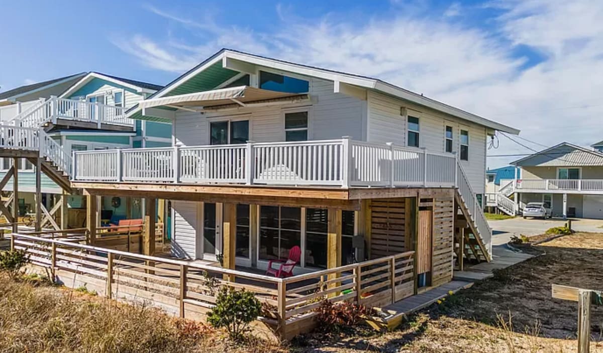 Escape to Paradise on Topsail Island! -Come stay at our charming beach house, just steps from the sand and surf. Whether you're sipping coffee on the deck or watching the sun rise over the waves, you’ll love the unbeatable ocean view and perfect location -Direct beach access – no roads to cross -Stunning, uninterrupted ocean views - Private outdoor spa as well as all linens provided -Walking distance to downtown shops, restaurants and the pier -Family-friendly and full of nearby activities