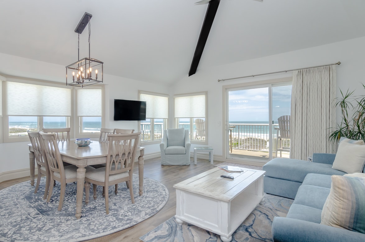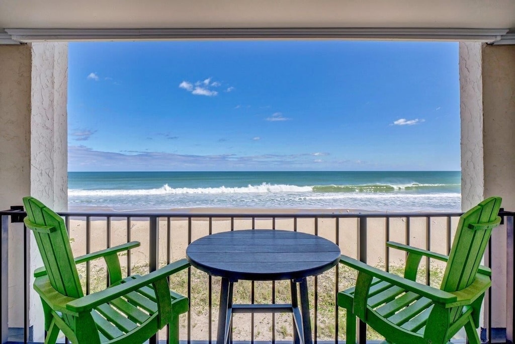 Enjoy million dollar ocean views at this third floor condo on gorgeous and peaceful North Topsail Beach. Be treated to striking sunrises and the view of dolphins playing near the shore. The Hatchling features a private balcony, 1 bedroom, bunk beds, and a full sleeper sofa. Topsail Island is the perfect place to relax and enjoy the sand, shells, and sea, with plenty of fun nearby. This “point unit” offers unobstructed views of the ocean, as well as 5g WiFi, TV/Roku and a fully equipped kitchen.