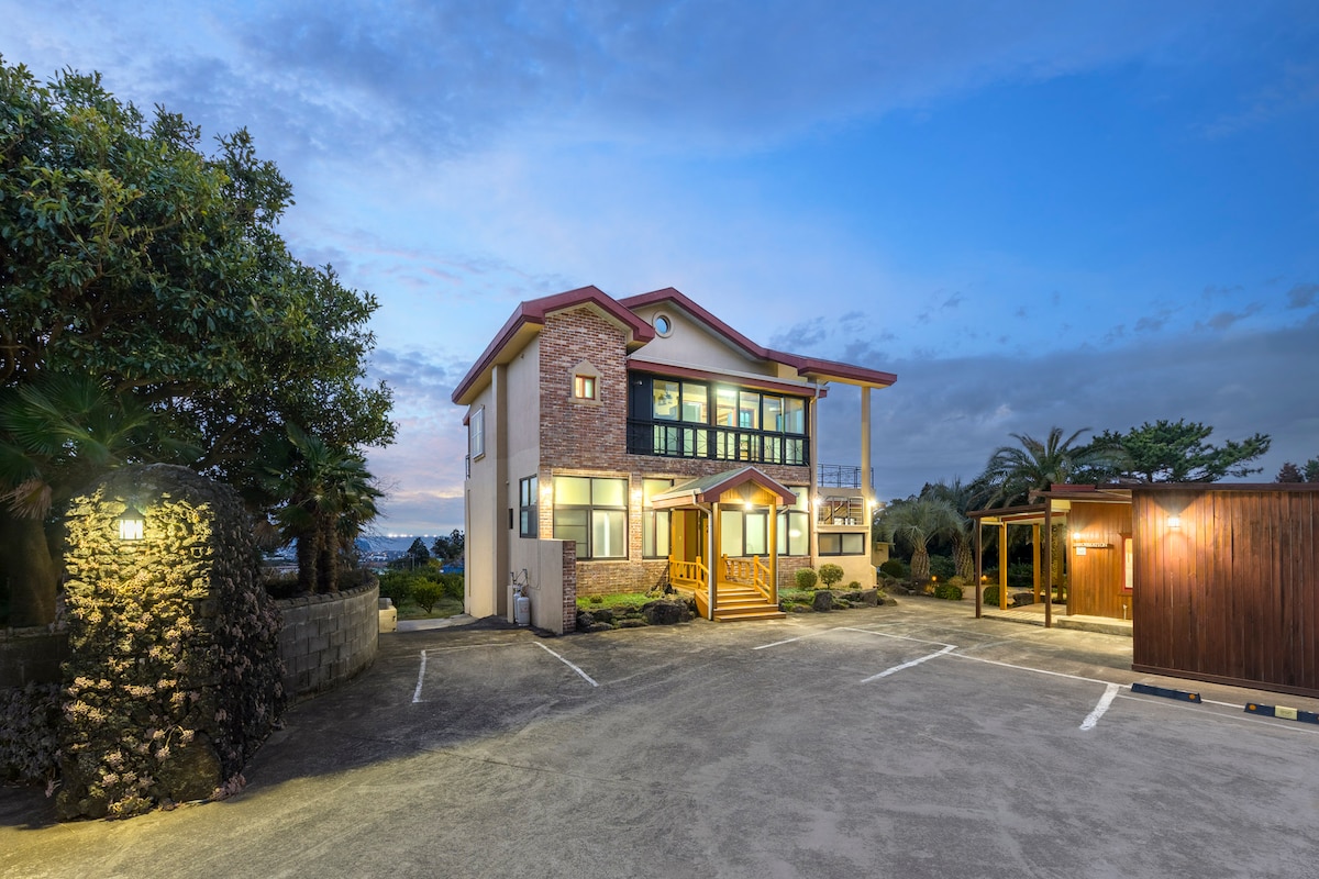 可以看到济州岛的西归浦海滨独栋别墅/免费使用烧烤架/威美绿草/威美海岸路/五号偶路