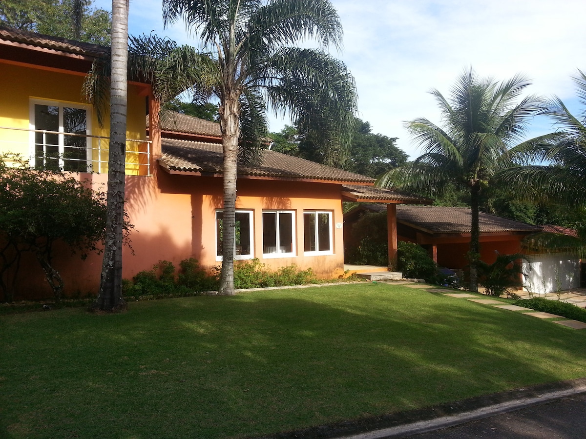 Beautiful house in a condominium without internal walls, which gives the feeling of a large garden. High speed Wi-Fi (250 Mbps). Just 600 meters from Paúba beach, with pedestrian access from the back of the condominium, this privileged location is between the hills of the Atlantic forest and the sea. Very close by (2 km) is the popular Maresias beach, a surfing spot and the beautiful crowd on the north coast of São Paulo.